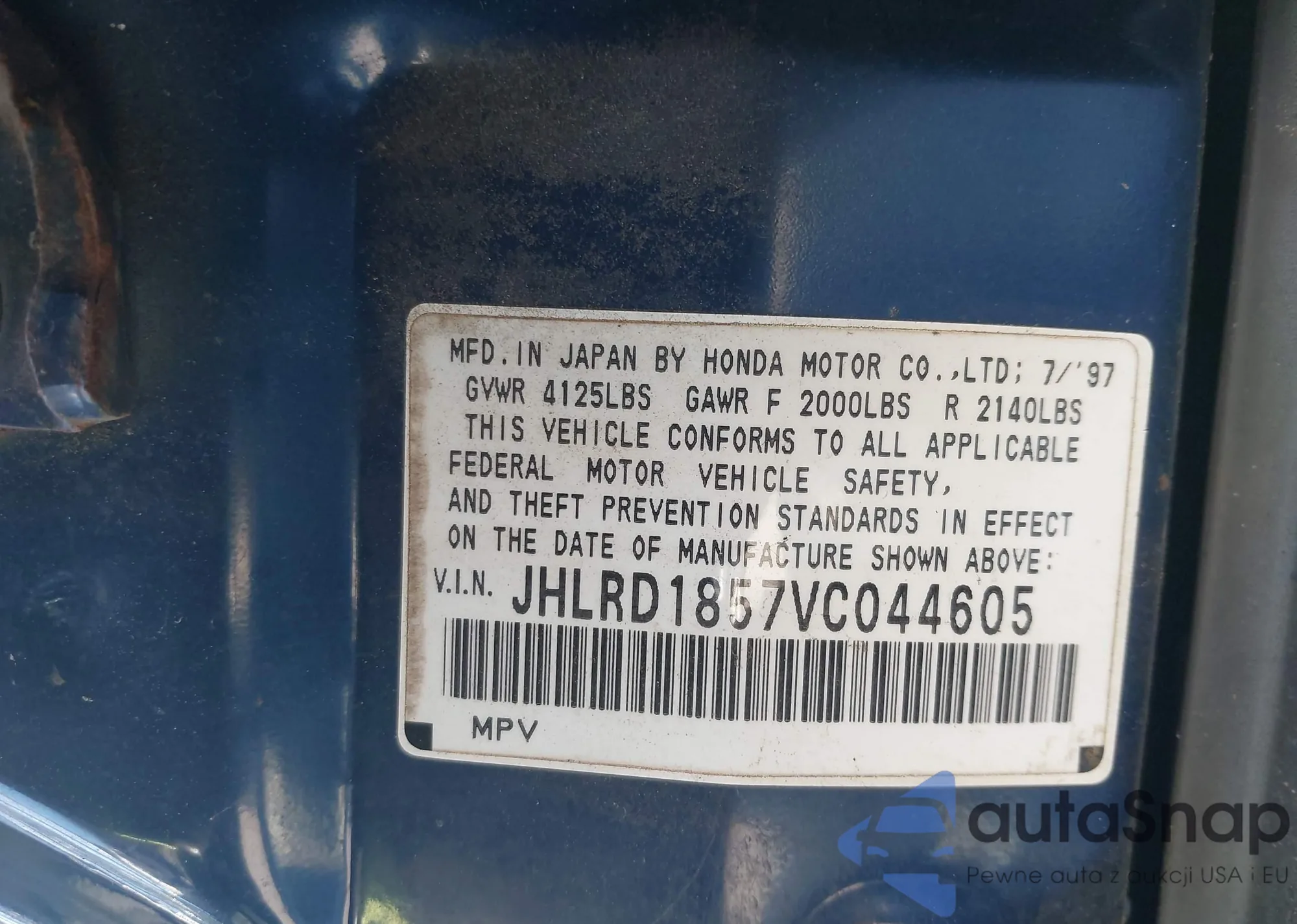 LOT: 43334222 VIN: 1HGCG1654WA010469