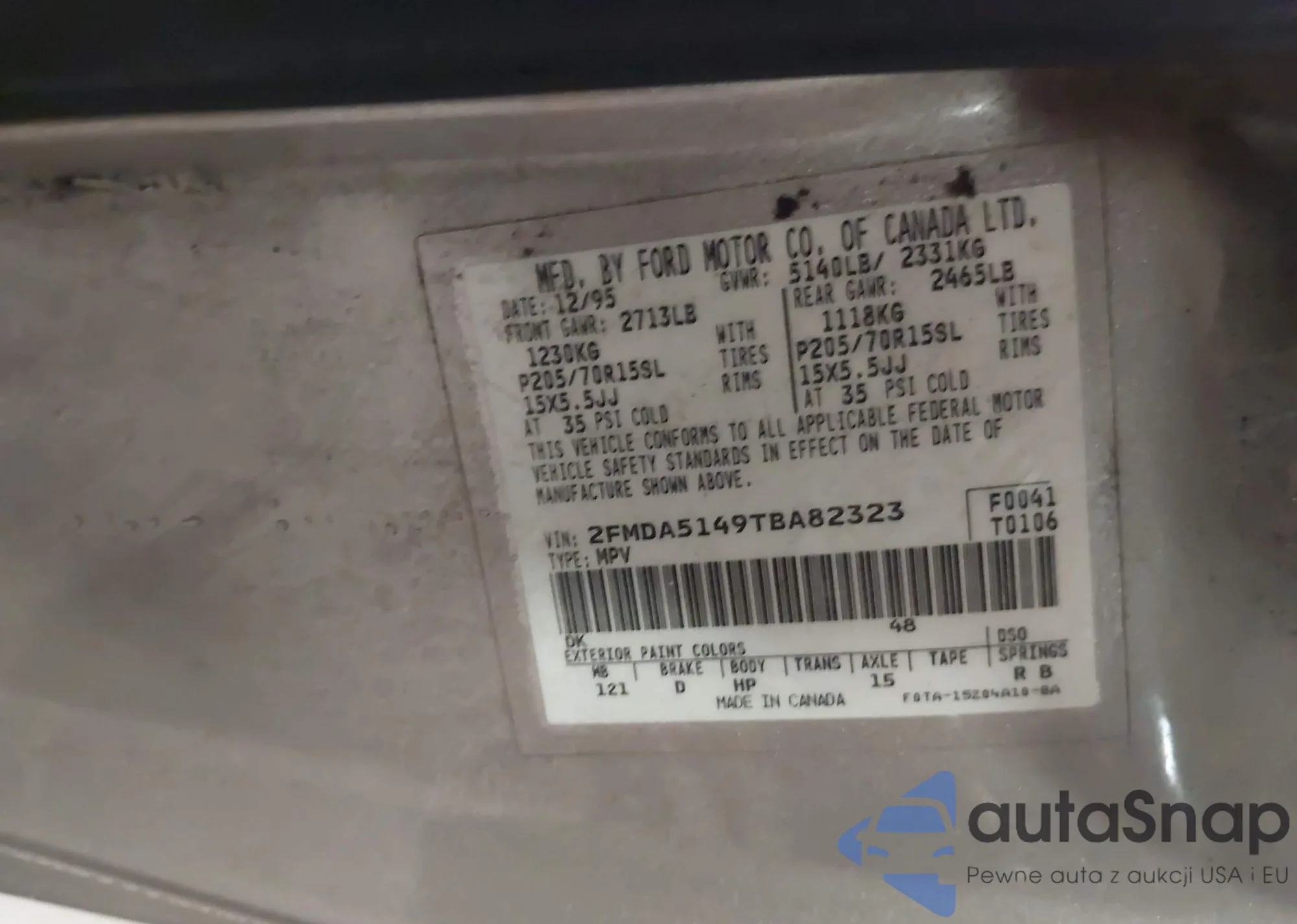 LOT: 43380907 VIN: 2FMDA5149TBA82323