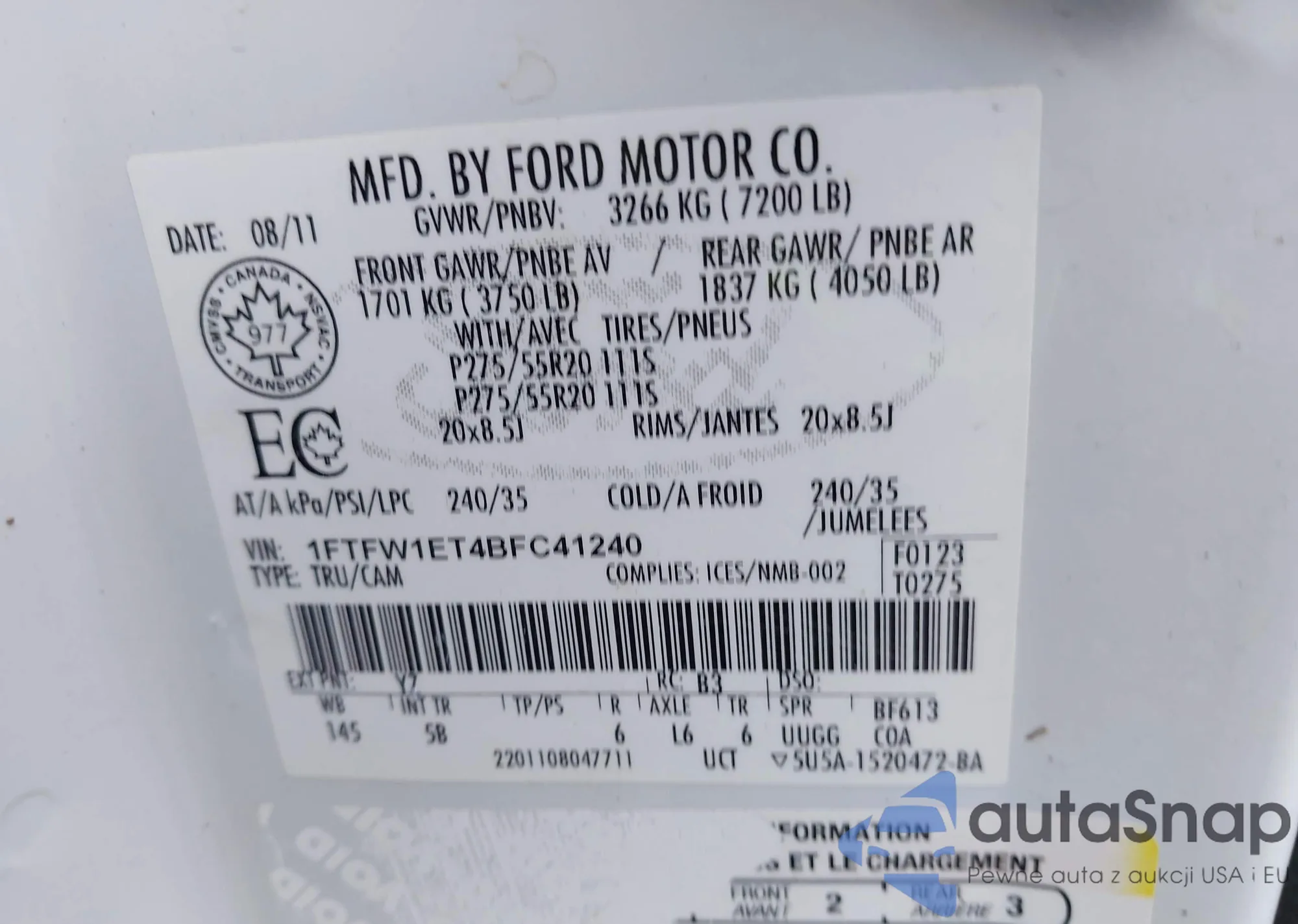 • VIN 1FTFW1ET4BFC41240