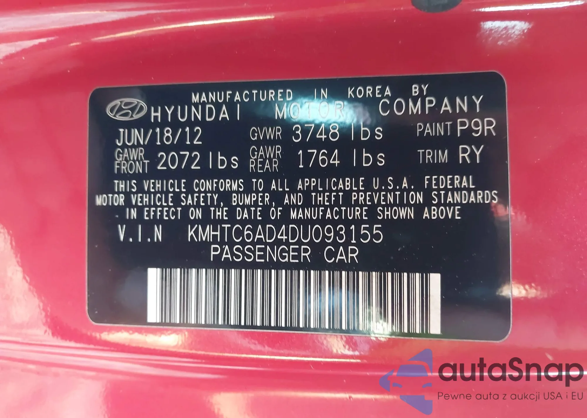 • VIN KMHTC6AD4DU093155