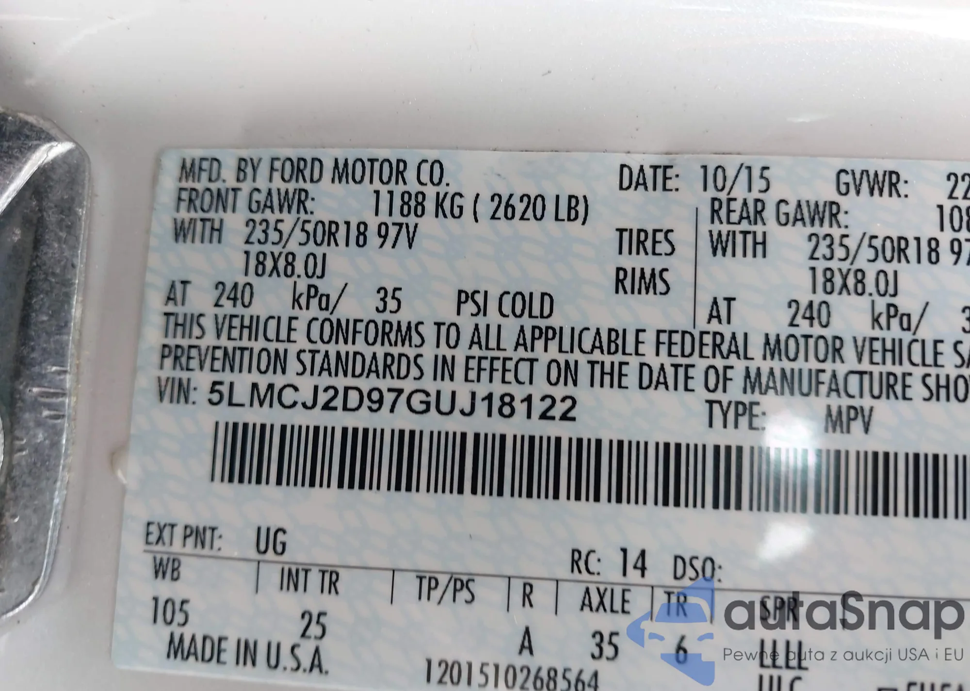LOT: 43244346 VIN: KL77LFE22RC152857