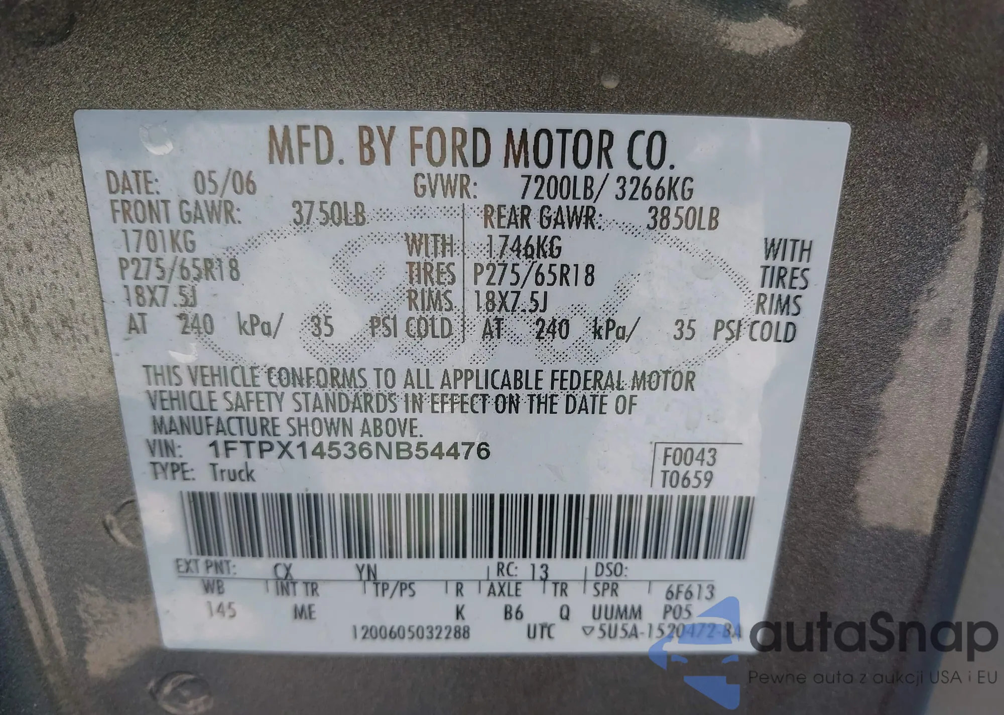 LOT: 43341889 VIN: 1FTPX14536NB54476