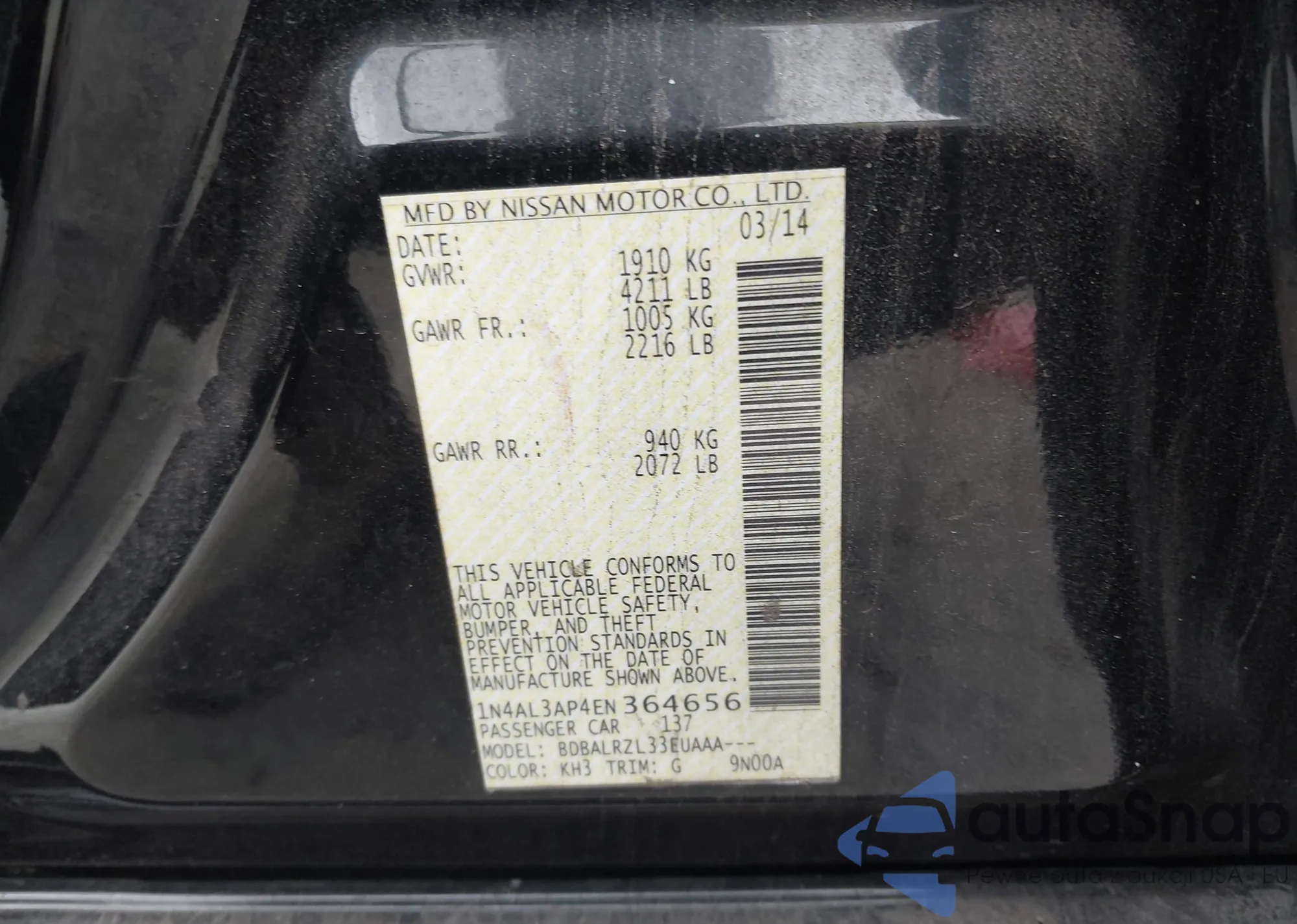 LOT: 42788137 VIN: 1N4AL3AP4EN364656