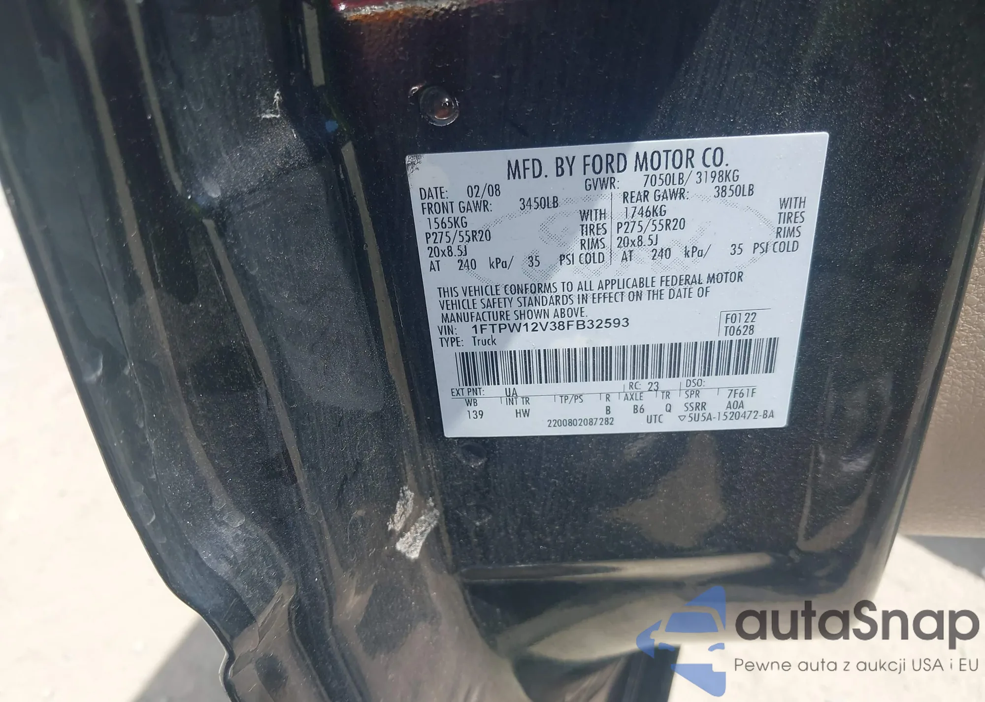 • VIN 1FTPW12V38FB32593