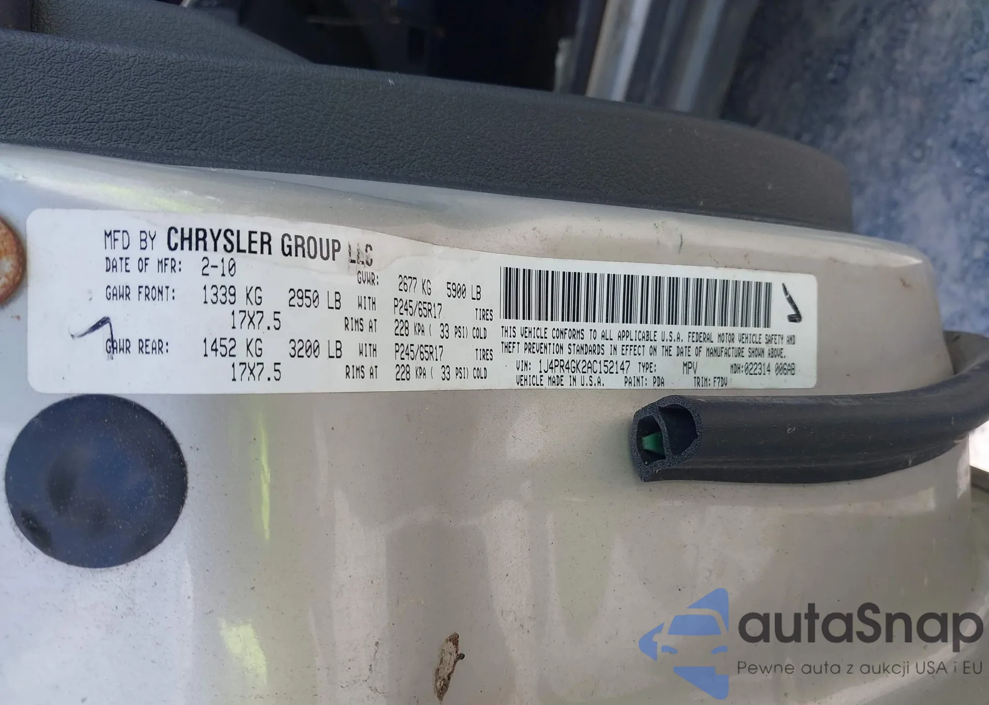 • VIN 1J4PR4GK2AC152147