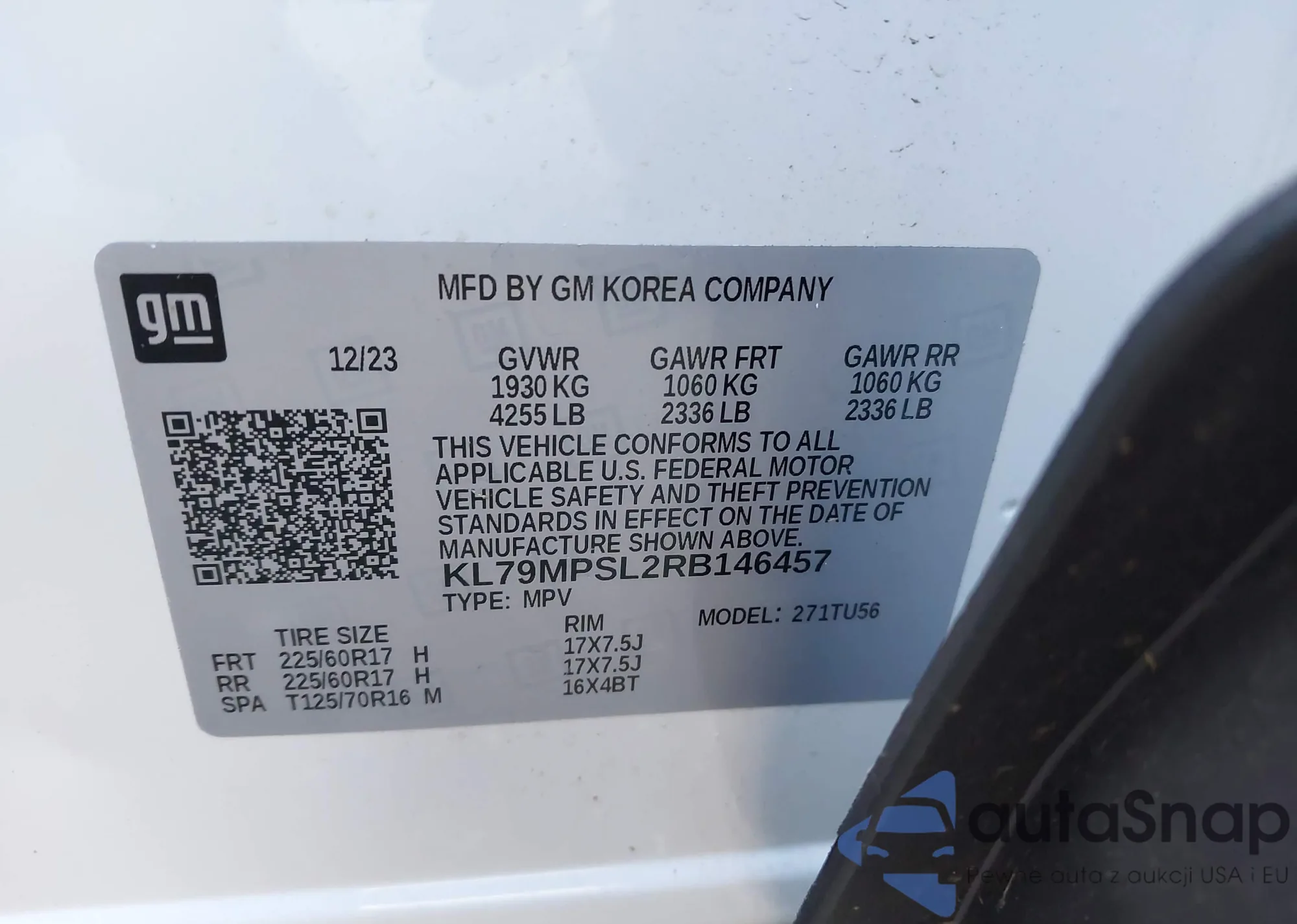 • VIN KL79MPSLXRB146447