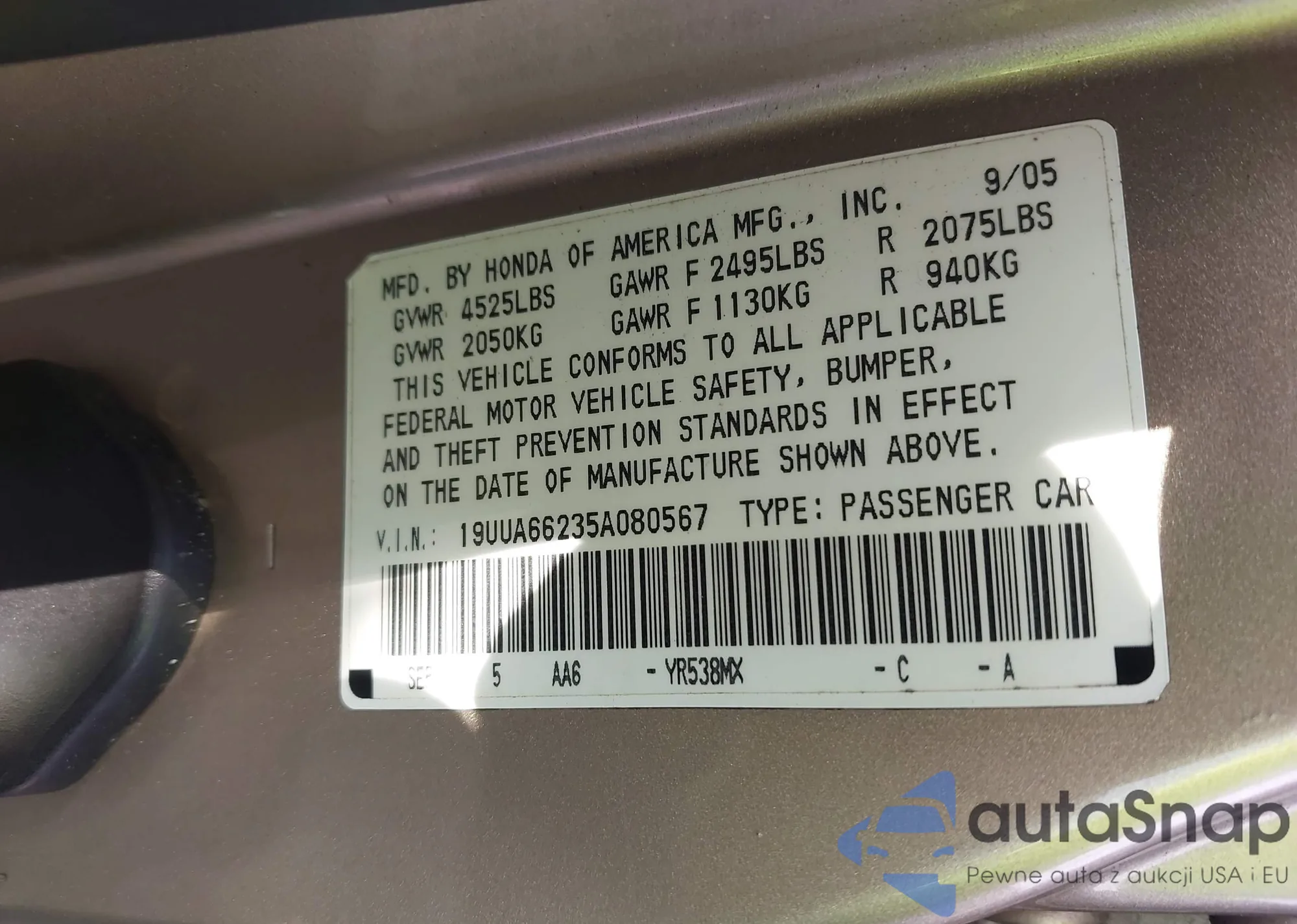 LOT: 43232739 VIN: 19UUA66235A080567