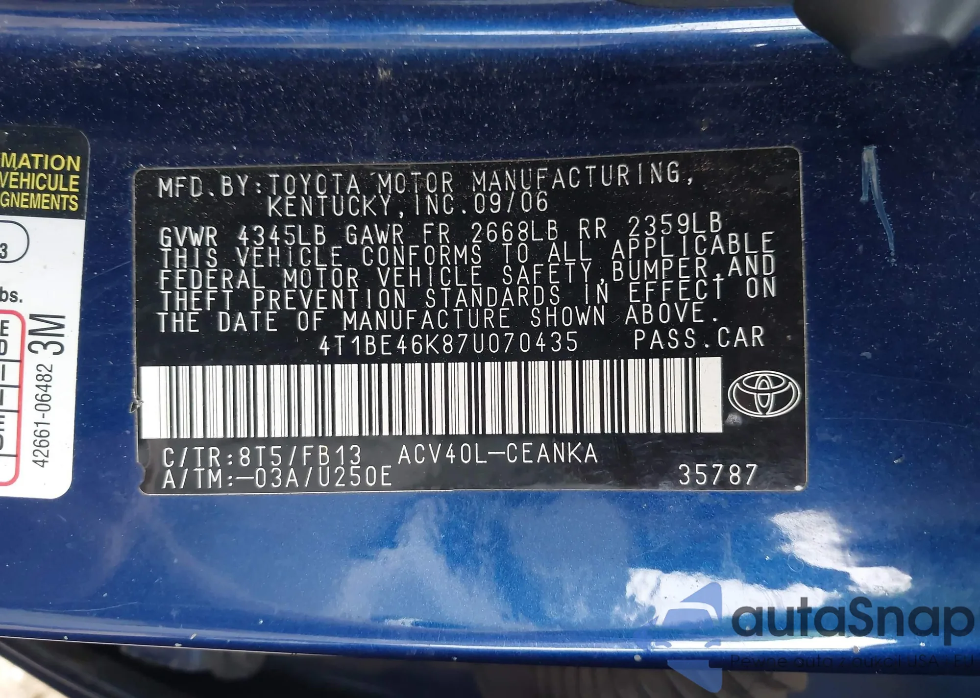 • VIN 4T1BE46K87U070435