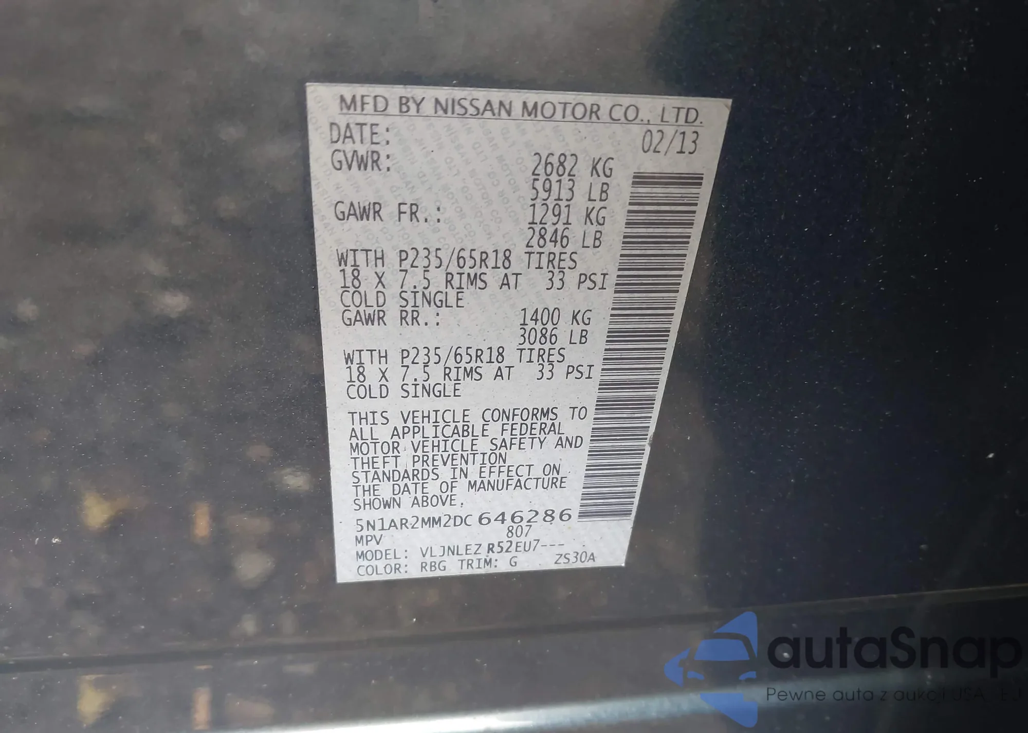 LOT: 43292964 VIN: 5N1AR2MM2DC646286