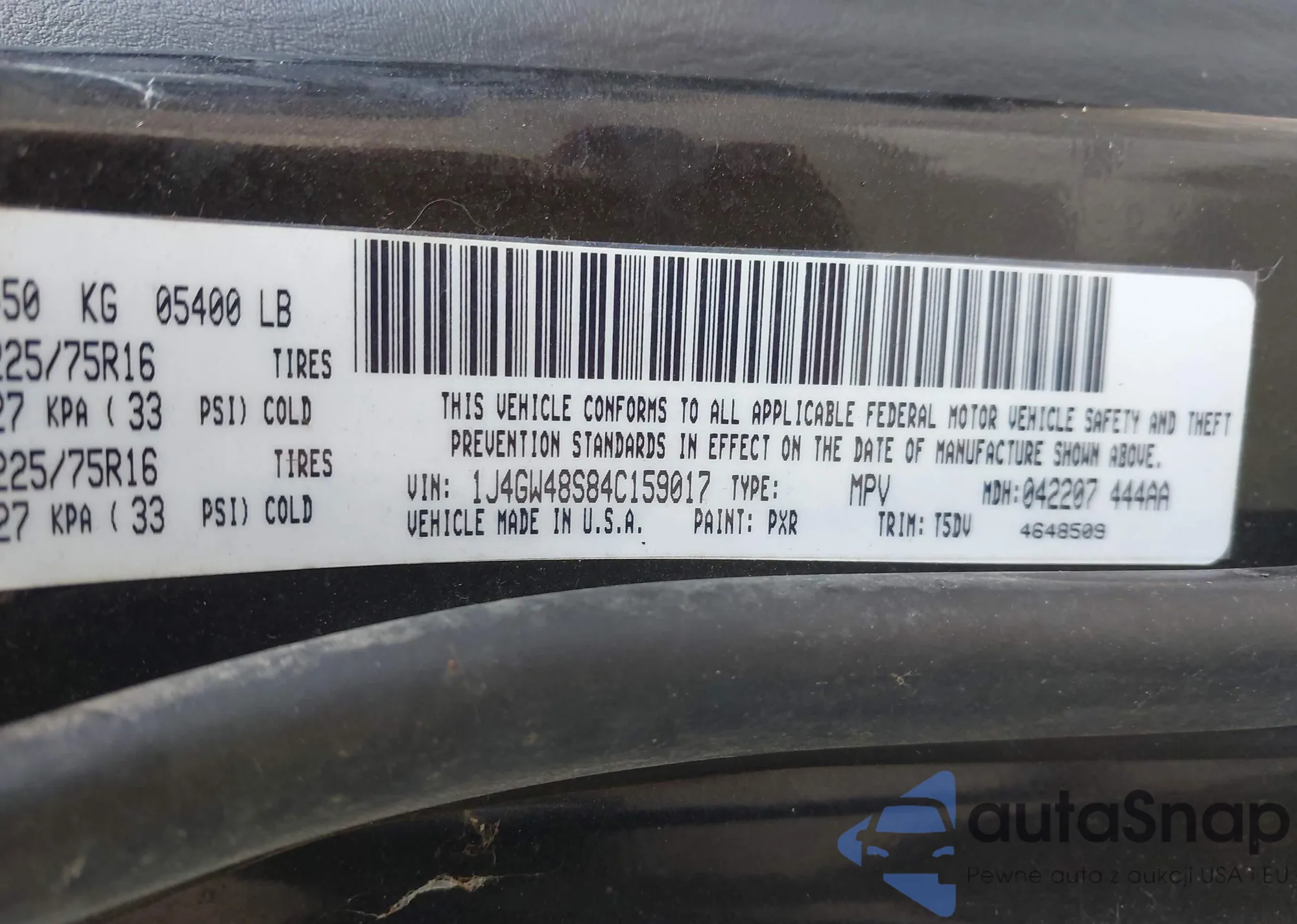 • VIN 1J4GW48S84C159017