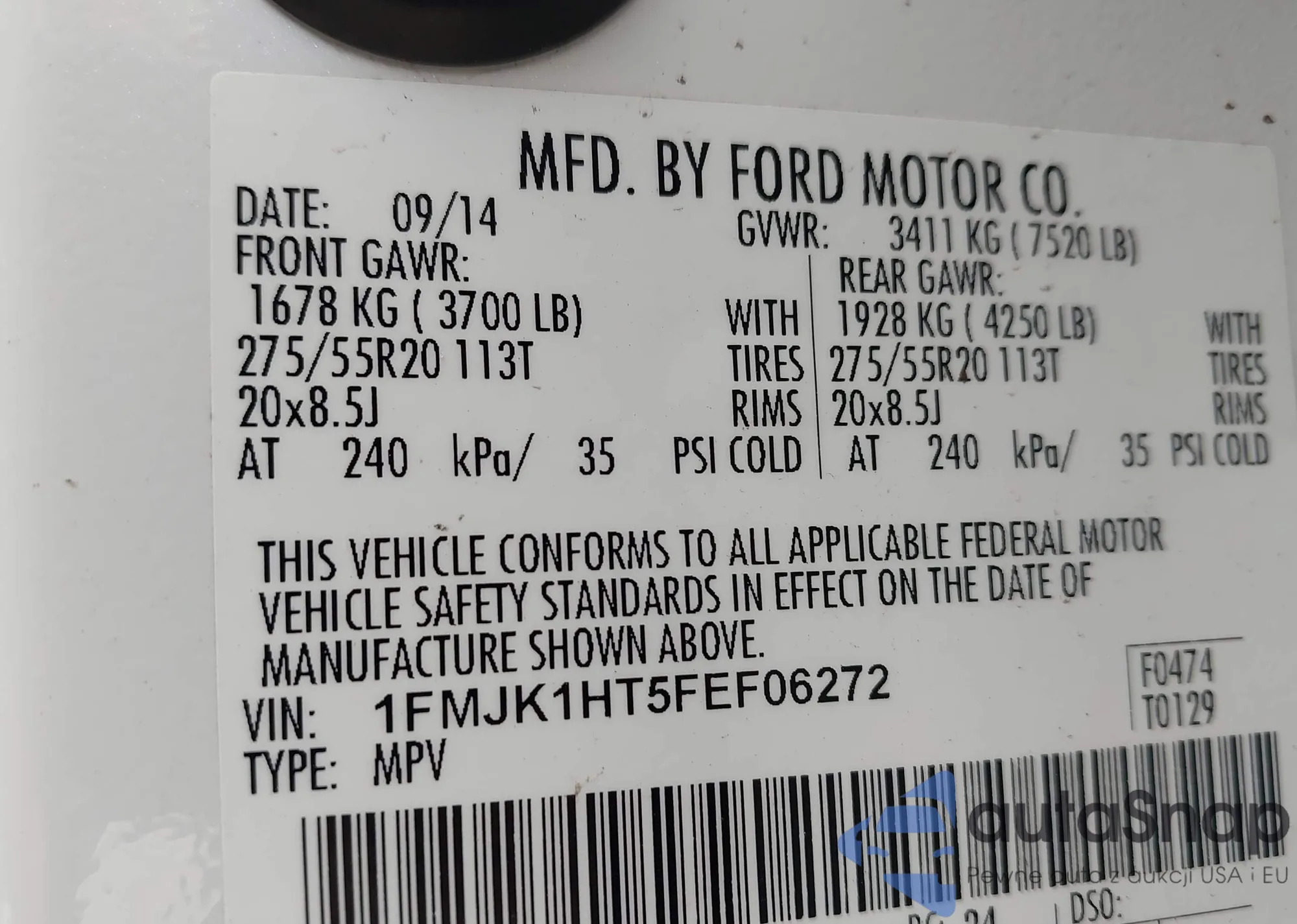 LOT: 43244152 VIN: 1FMJK1HT5FEF06272