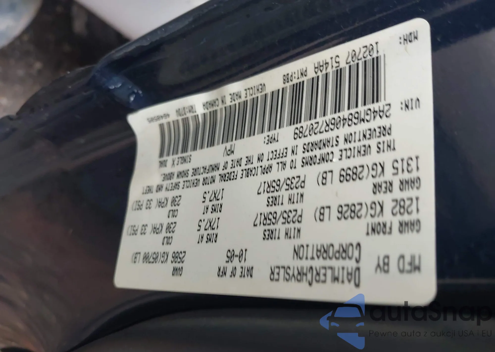 LOT: 42889893 VIN: 2A4GM68406R720789