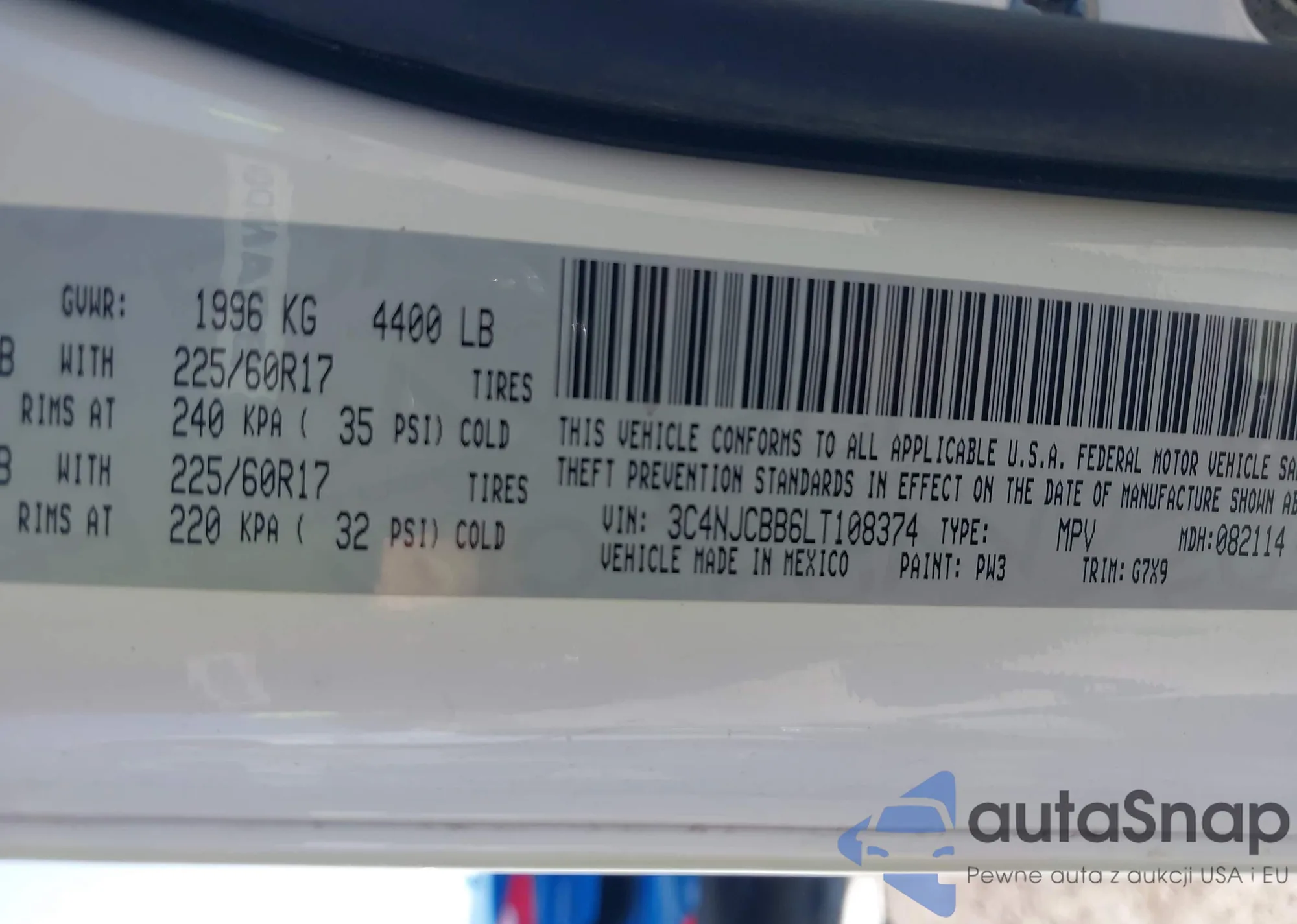 LOT: 43137320 VIN: ZACCJBAB5JPJ21881