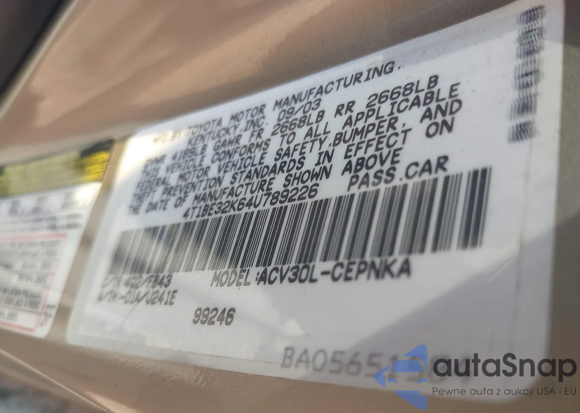 LOT: 43274286 VIN: 4T1BE32K64U789226