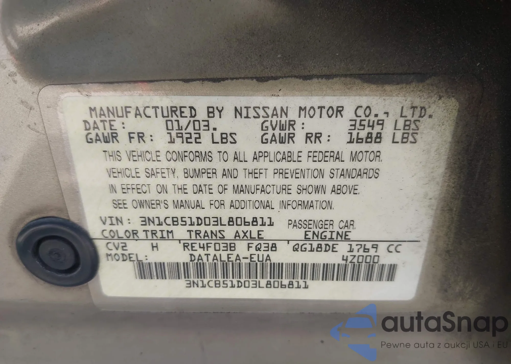 • VIN 3N1CB51D03L806811