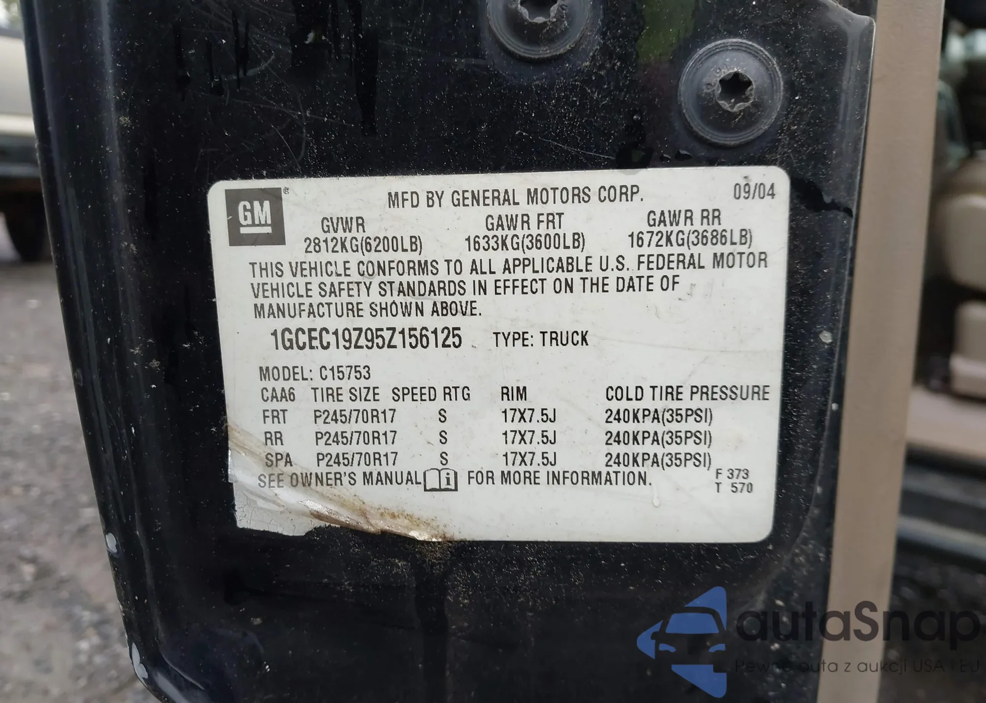 • VIN 1GCEC19Z95Z156125