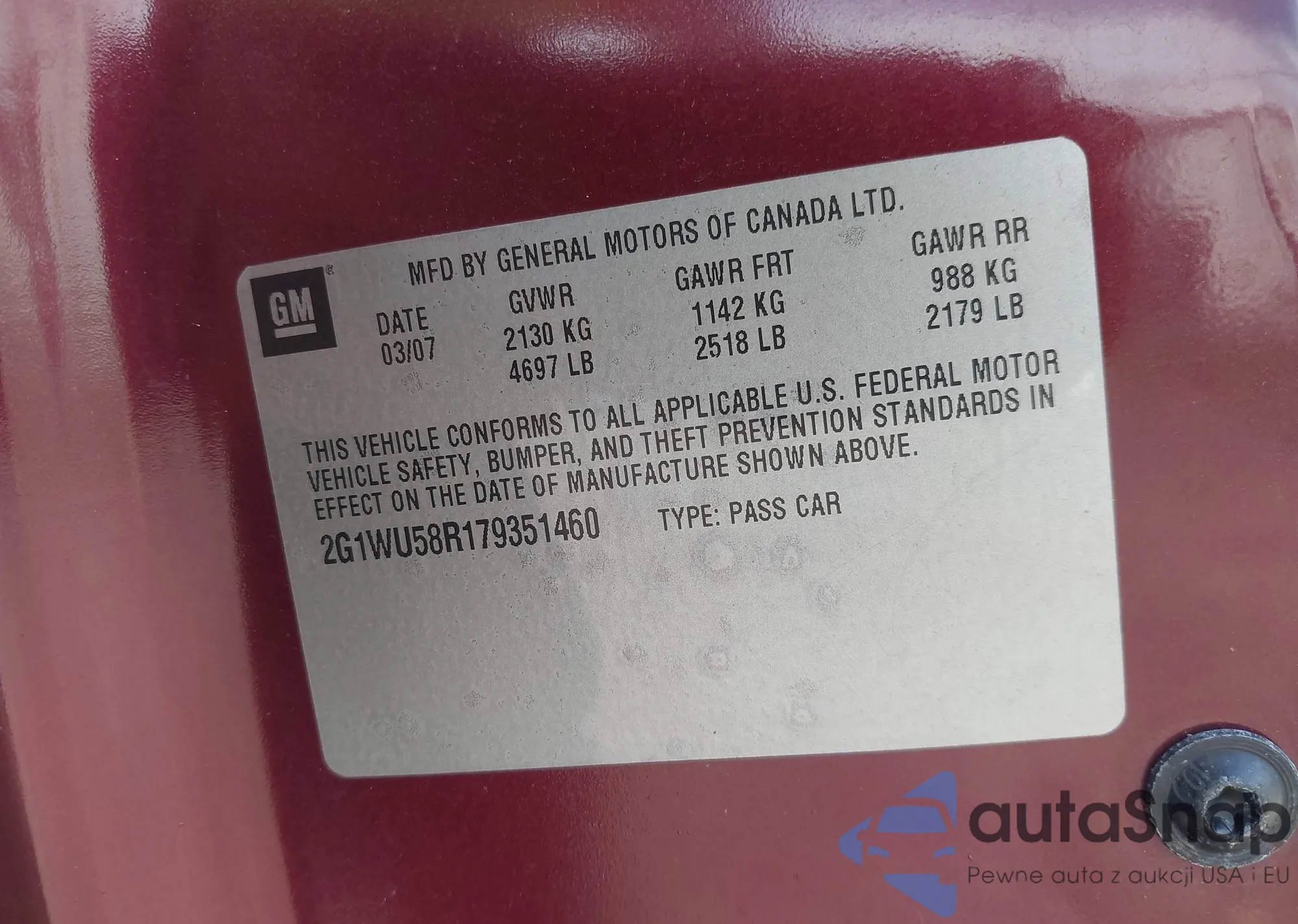• VIN 2G1WU58R179351460