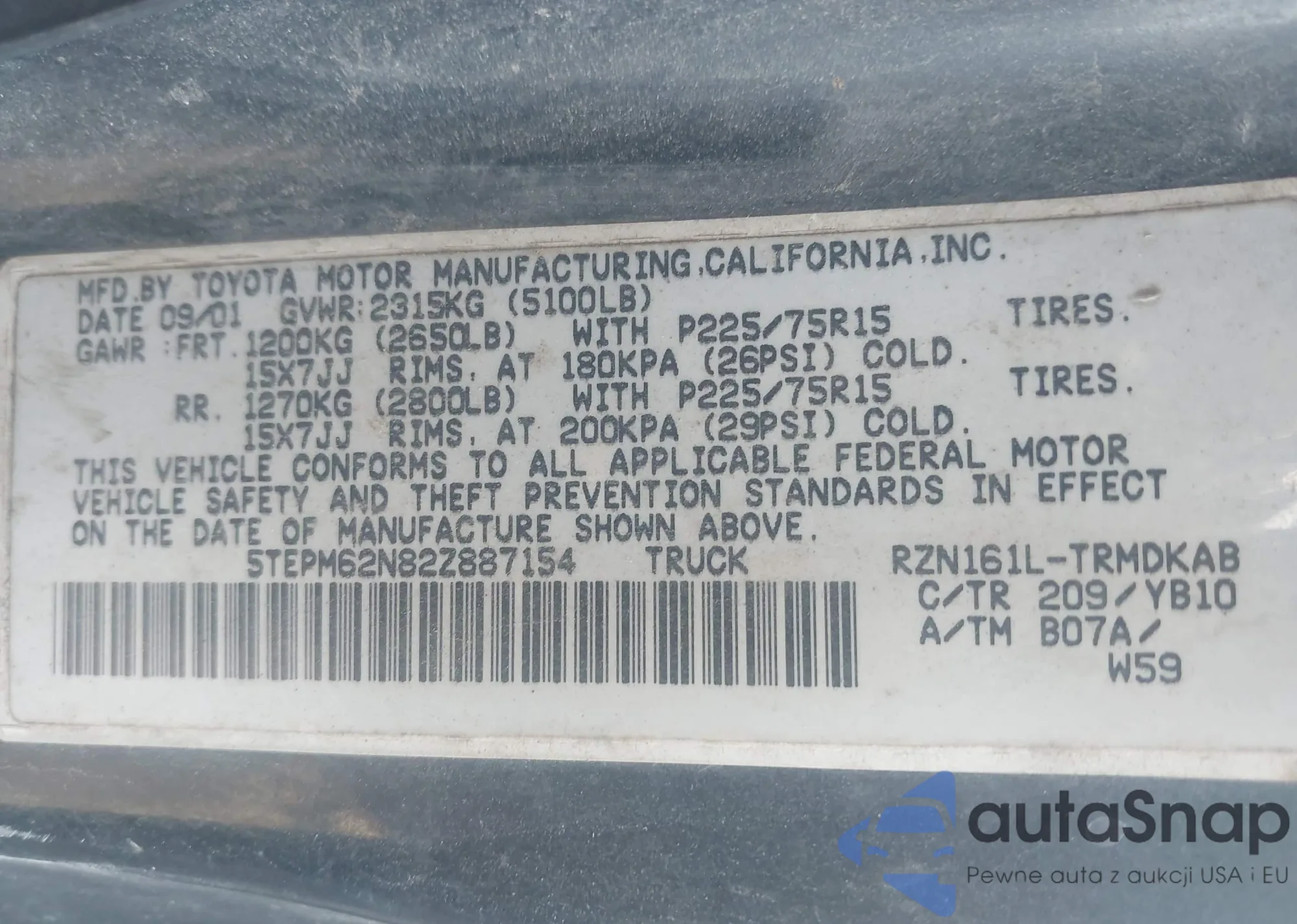 LOT: 43349532 VIN: 5TEPM62N82Z887154