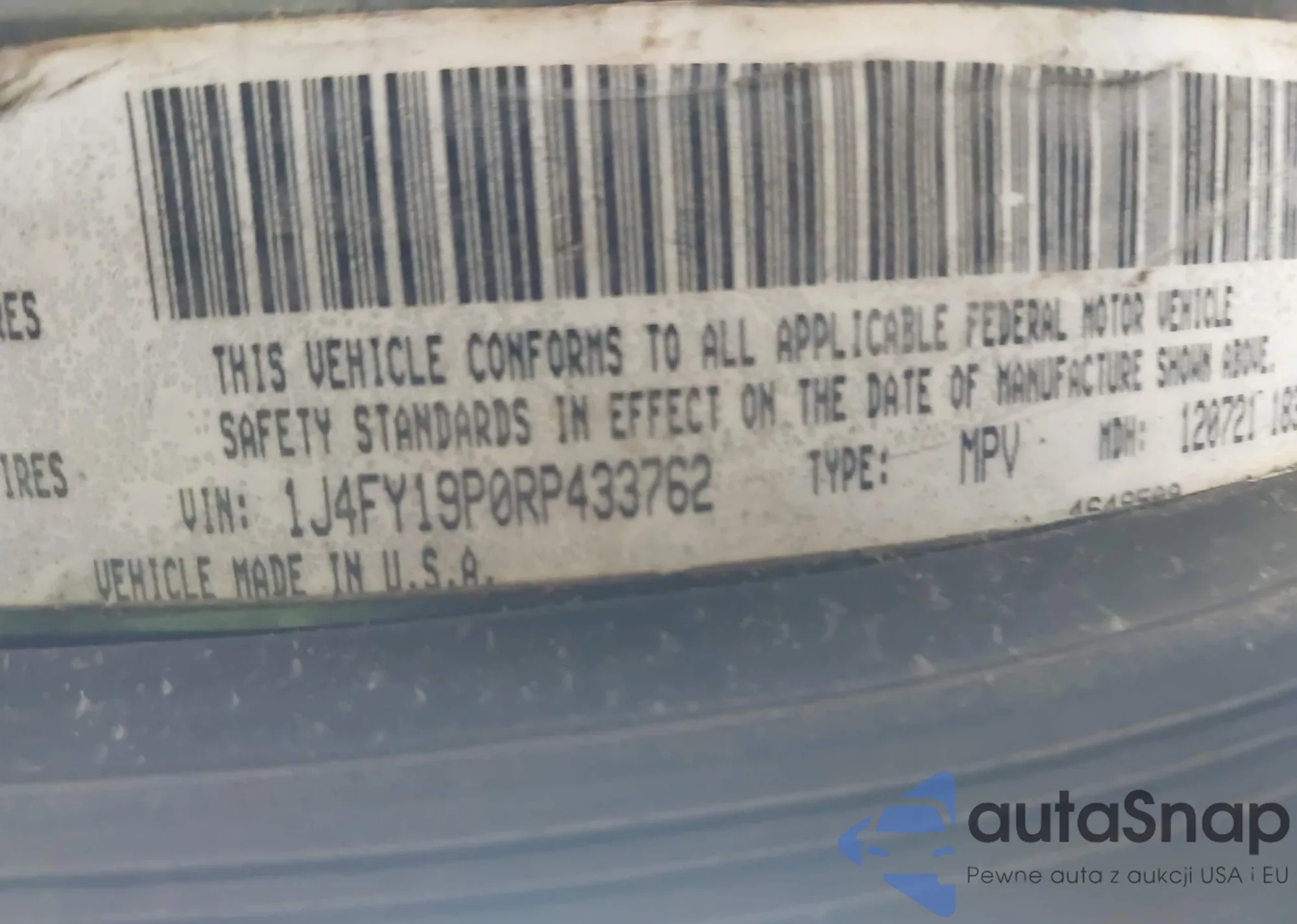 LOT: 43239048 VIN: 1J4FY19P0RP433762
