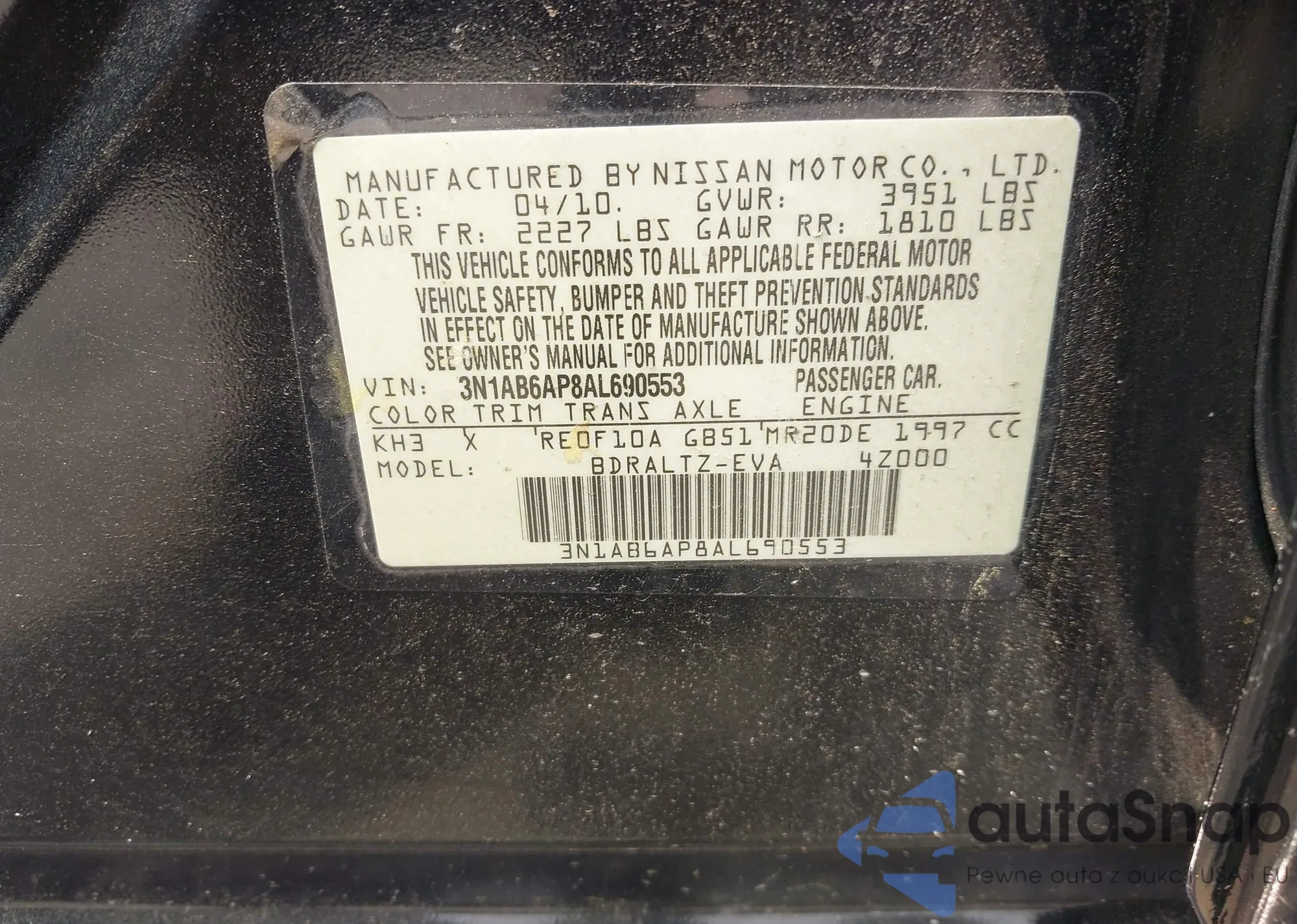 LOT: 42885337 VIN: 1N4AL21E98C171976