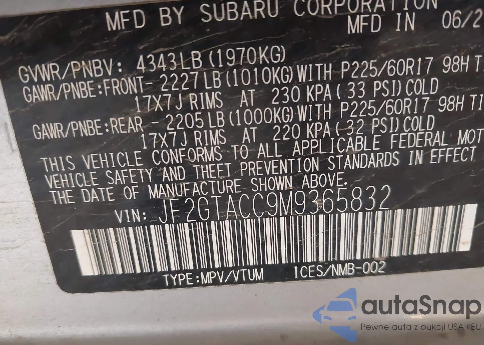 • VIN 2HGFC2F61MH525905