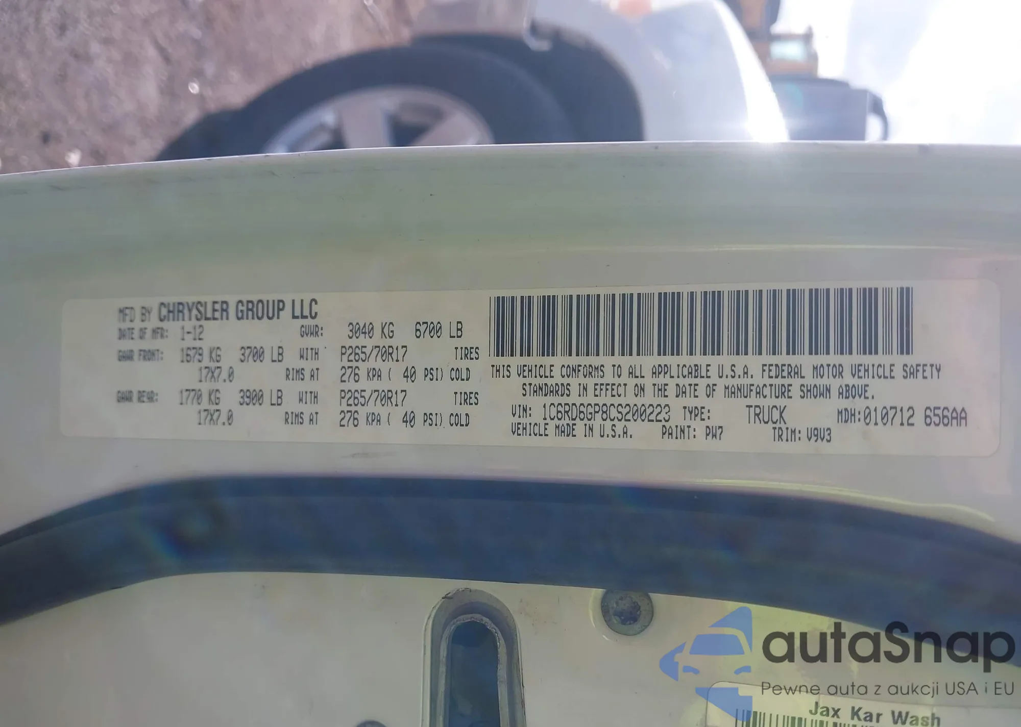 • VIN 1C6RD6GP8CS200223