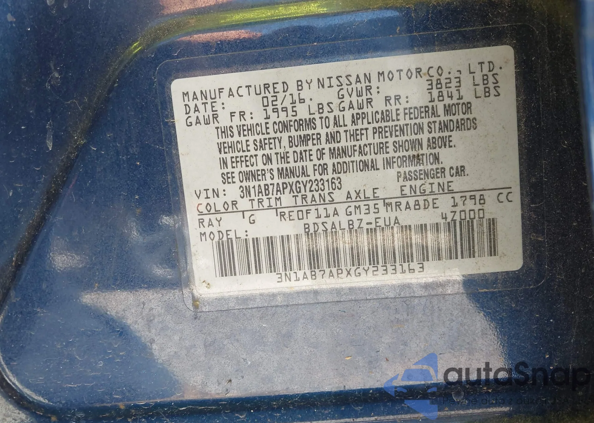• VIN 3N1AB7APXGY233163