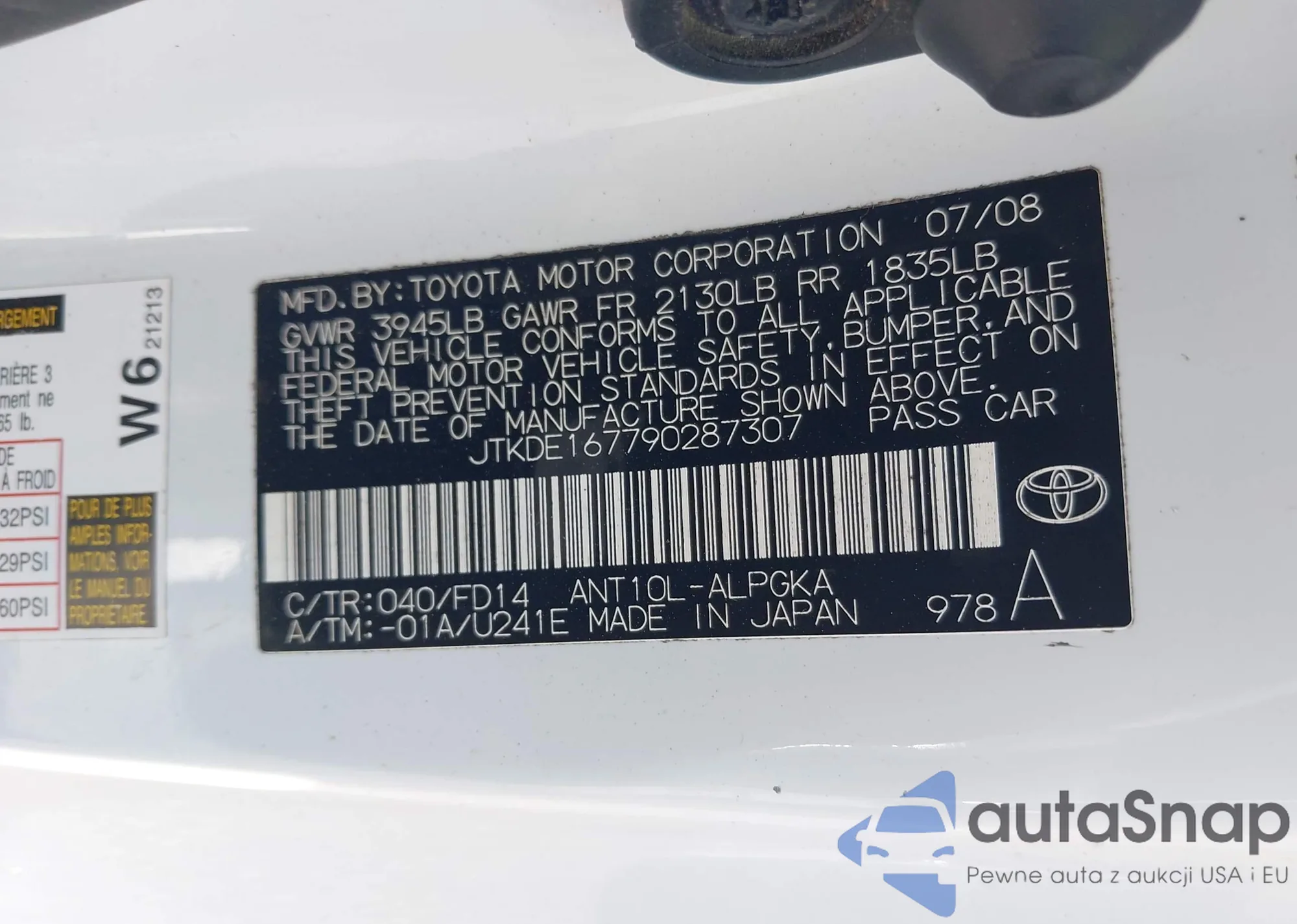 LOT: 43163064 VIN: JTKDE167790287307