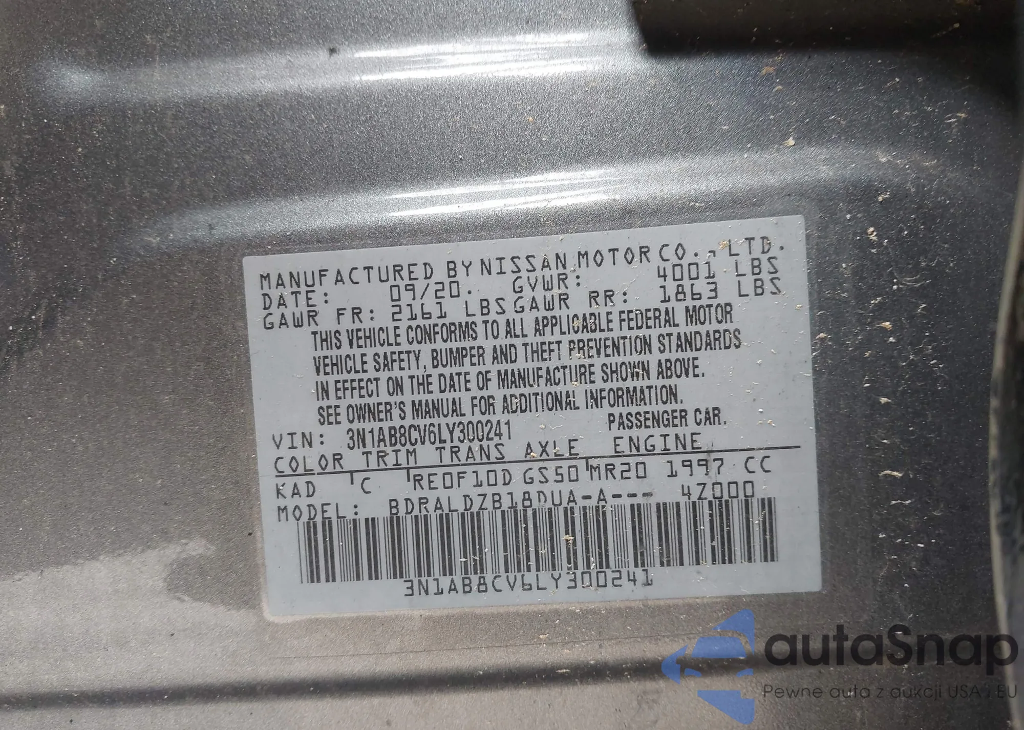 • VIN 3N1AB8CV6LY300241