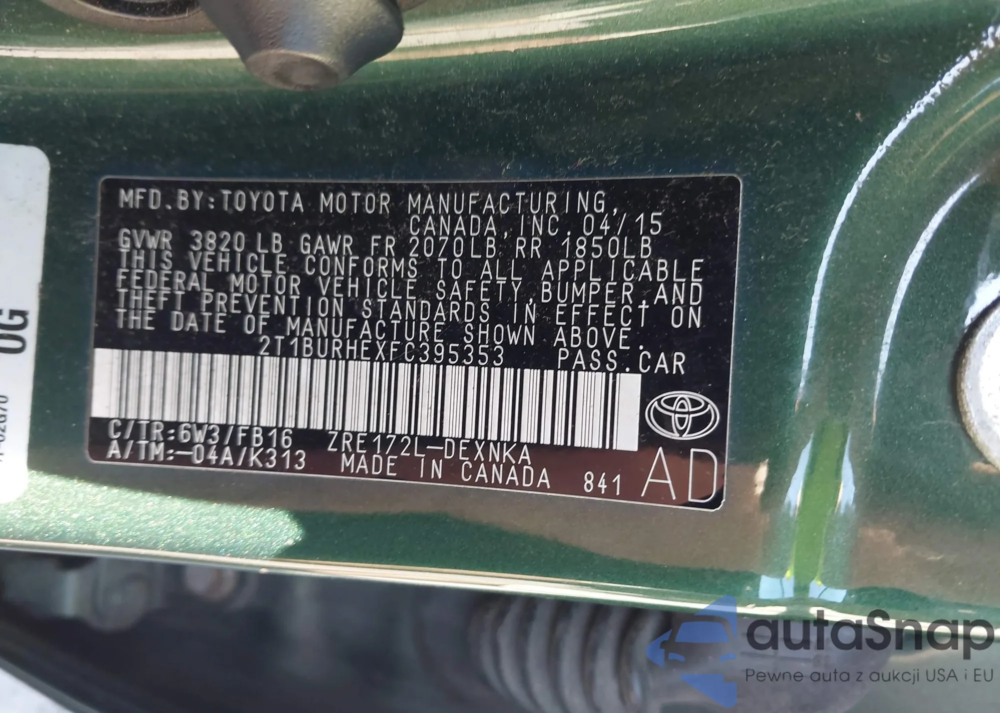 LOT: 43215053 VIN: 2T1BURHEXFC395353