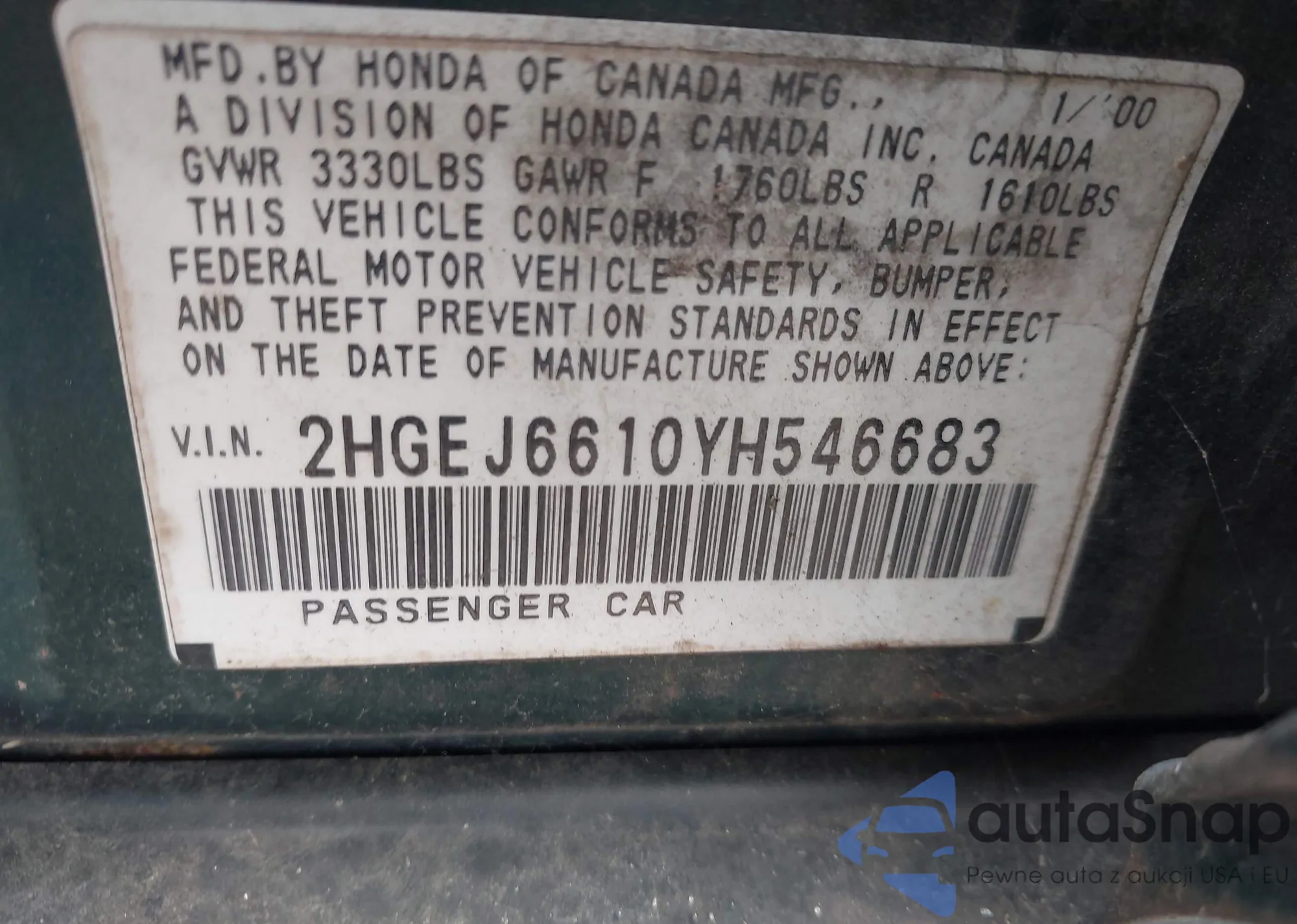 • VIN SHSRD788X6U416784