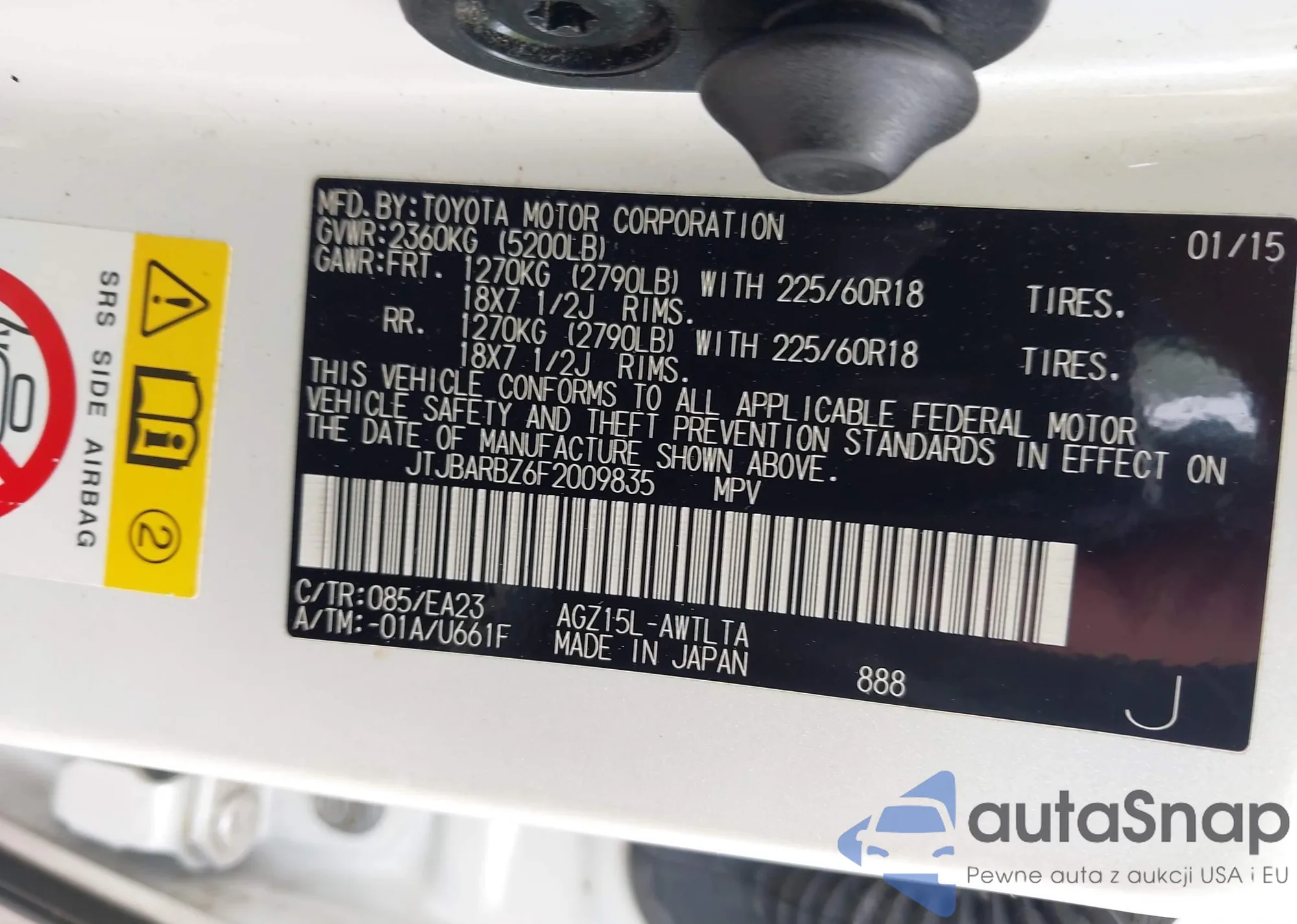 • VIN JTJBARBZ6F2009835