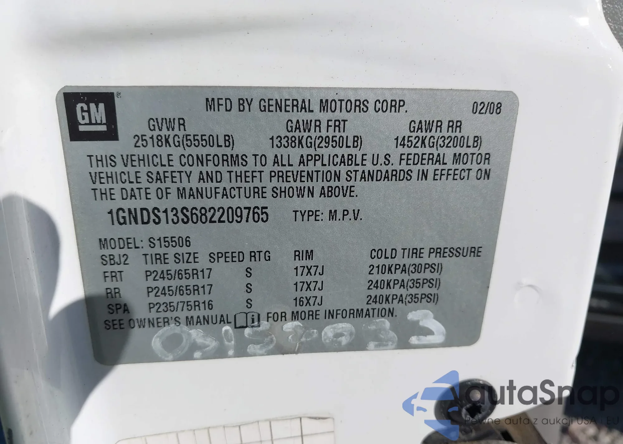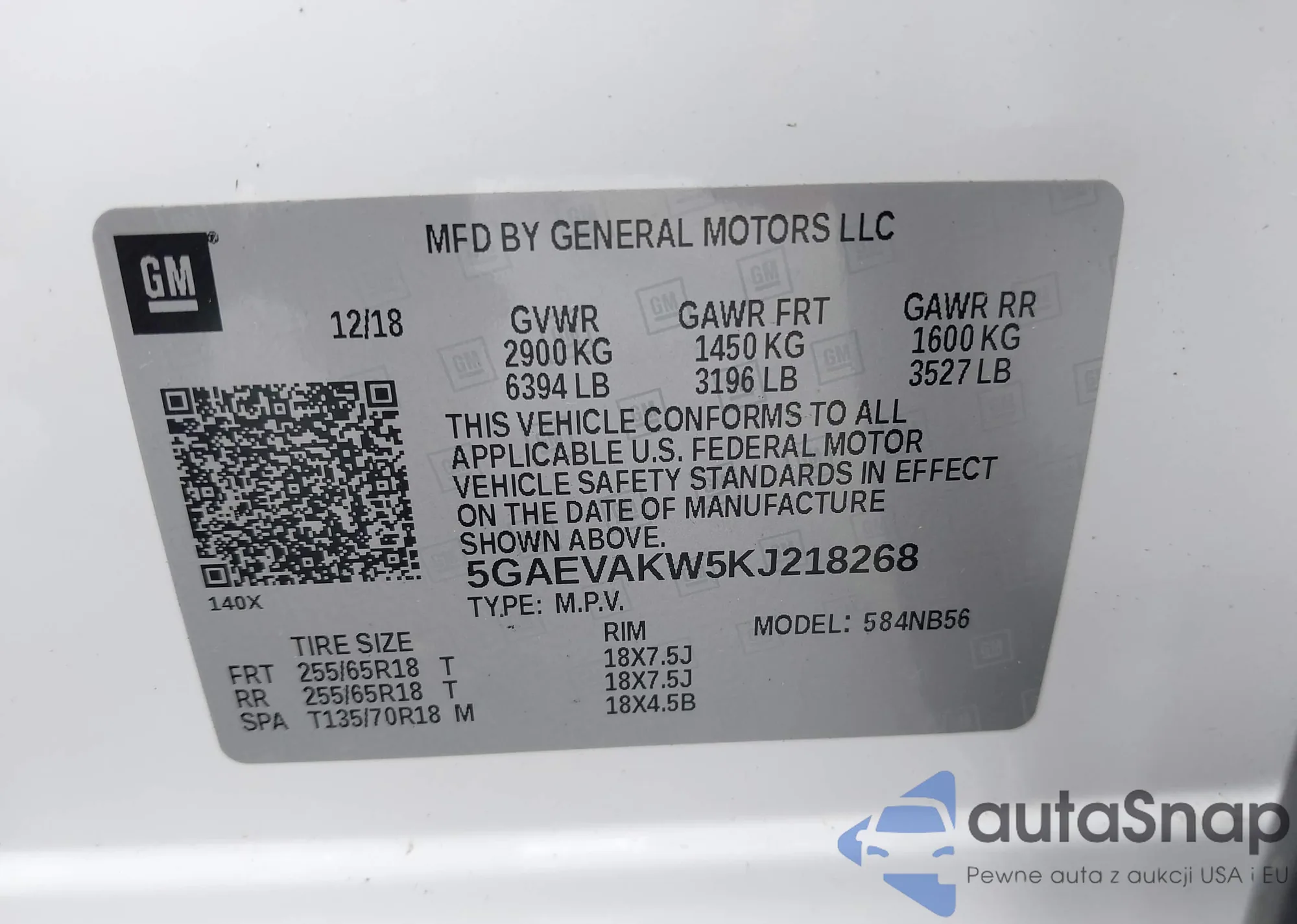 • VIN 5GAEVAKW5KJ218268