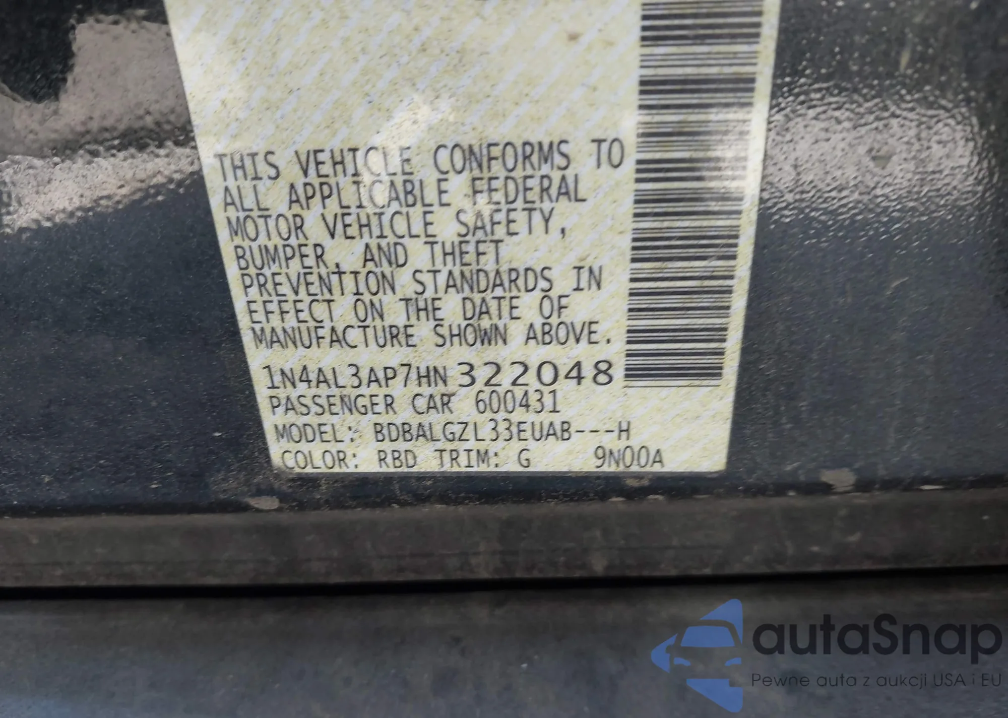 • VIN 1N4AL3AP7HN322048