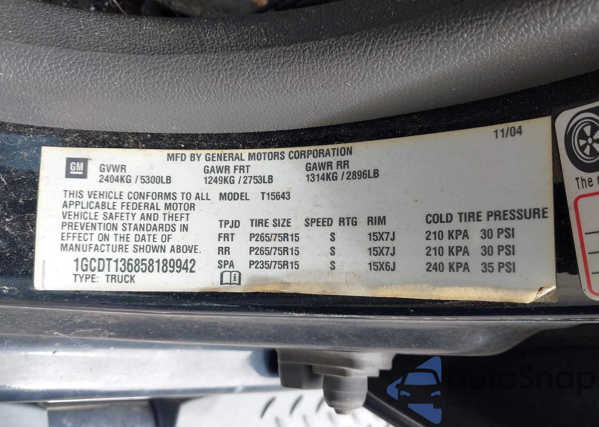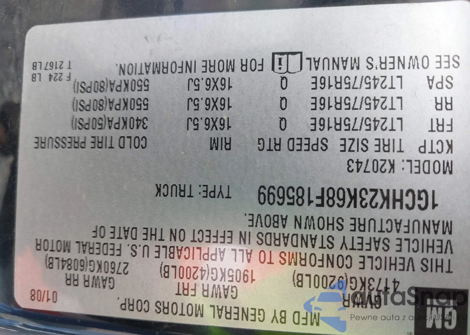 LOT: 43200876 VIN: 1GCDT136858189942