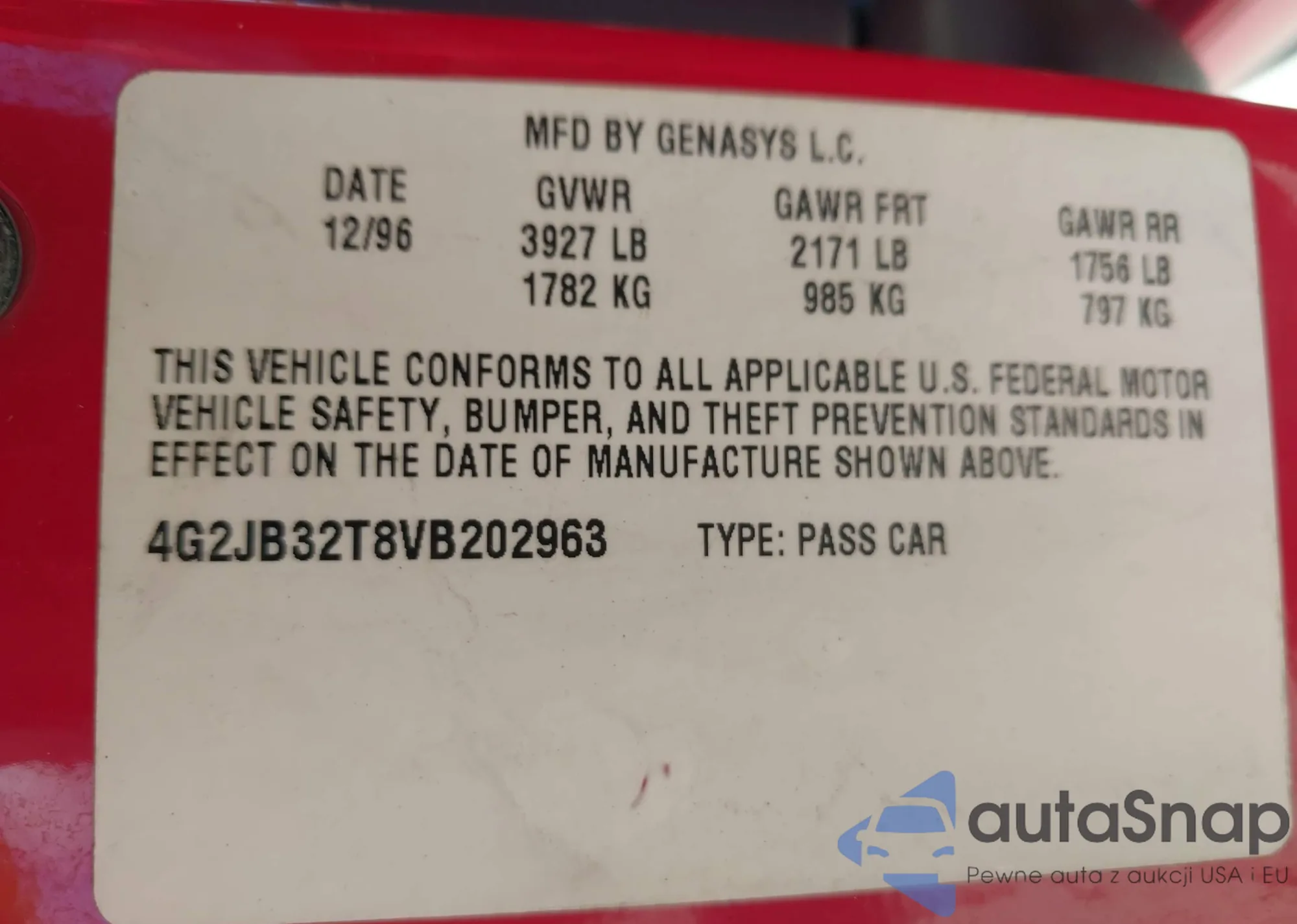 • VIN 4G2JB32T8VB202963