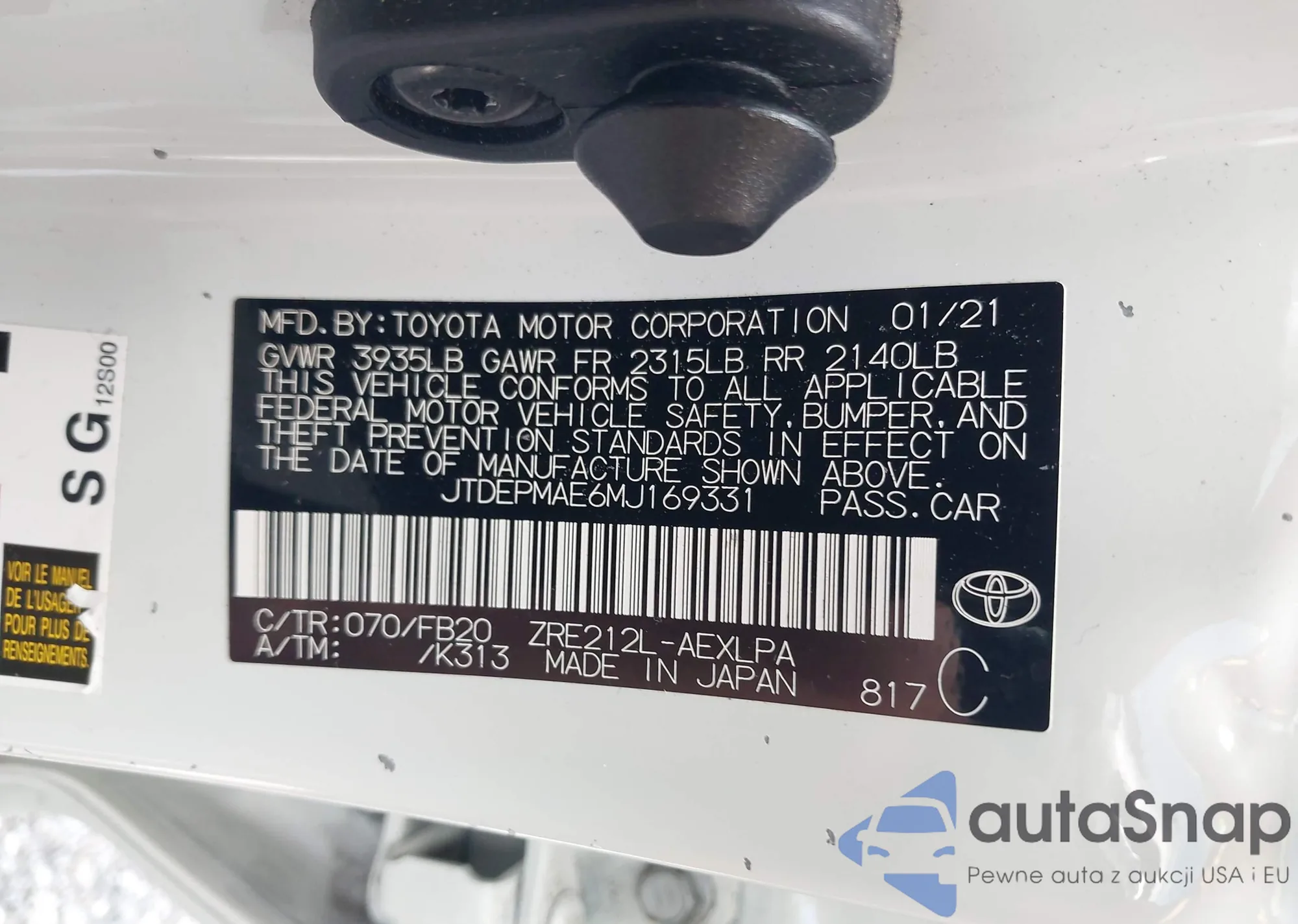• VIN JTDEPMAE6MJ169331