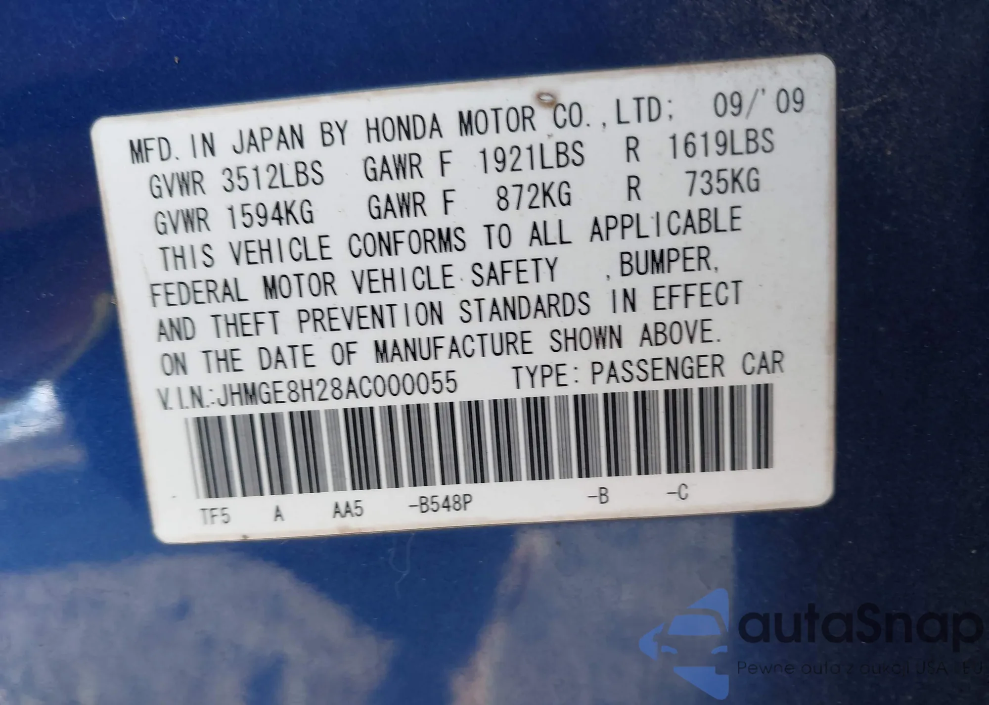 • VIN WDCGG8HB8AF477038