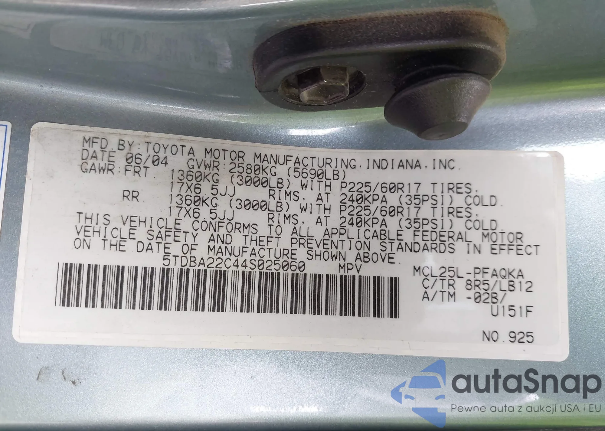 LOT: 43325185 VIN: 5TDBA22C44S025060