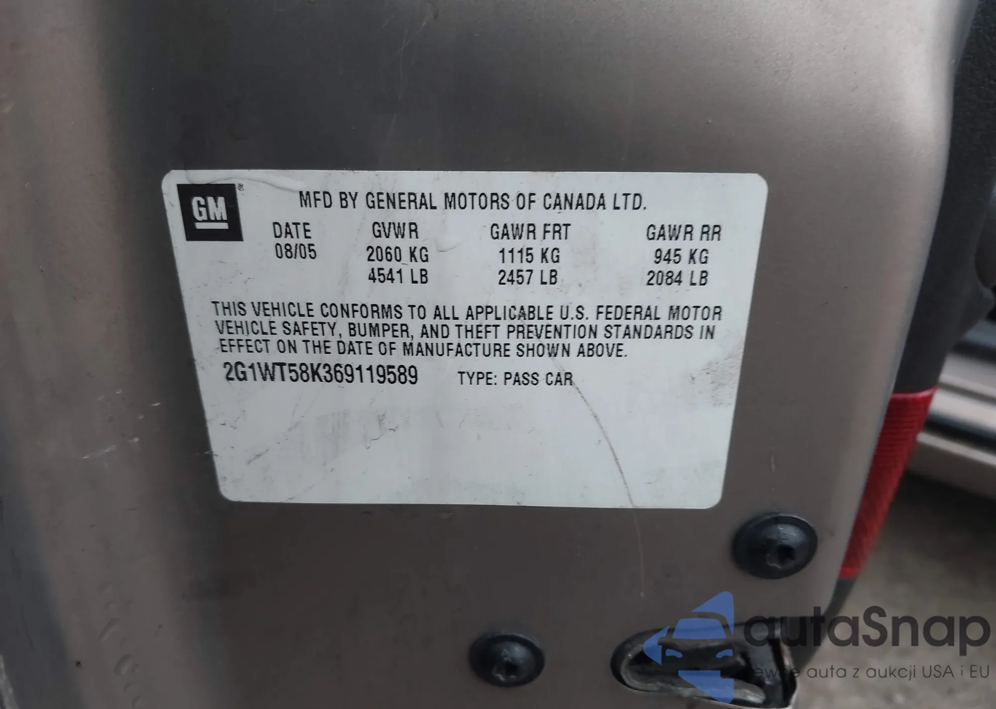 • VIN 2GNFLEEK6F6165549