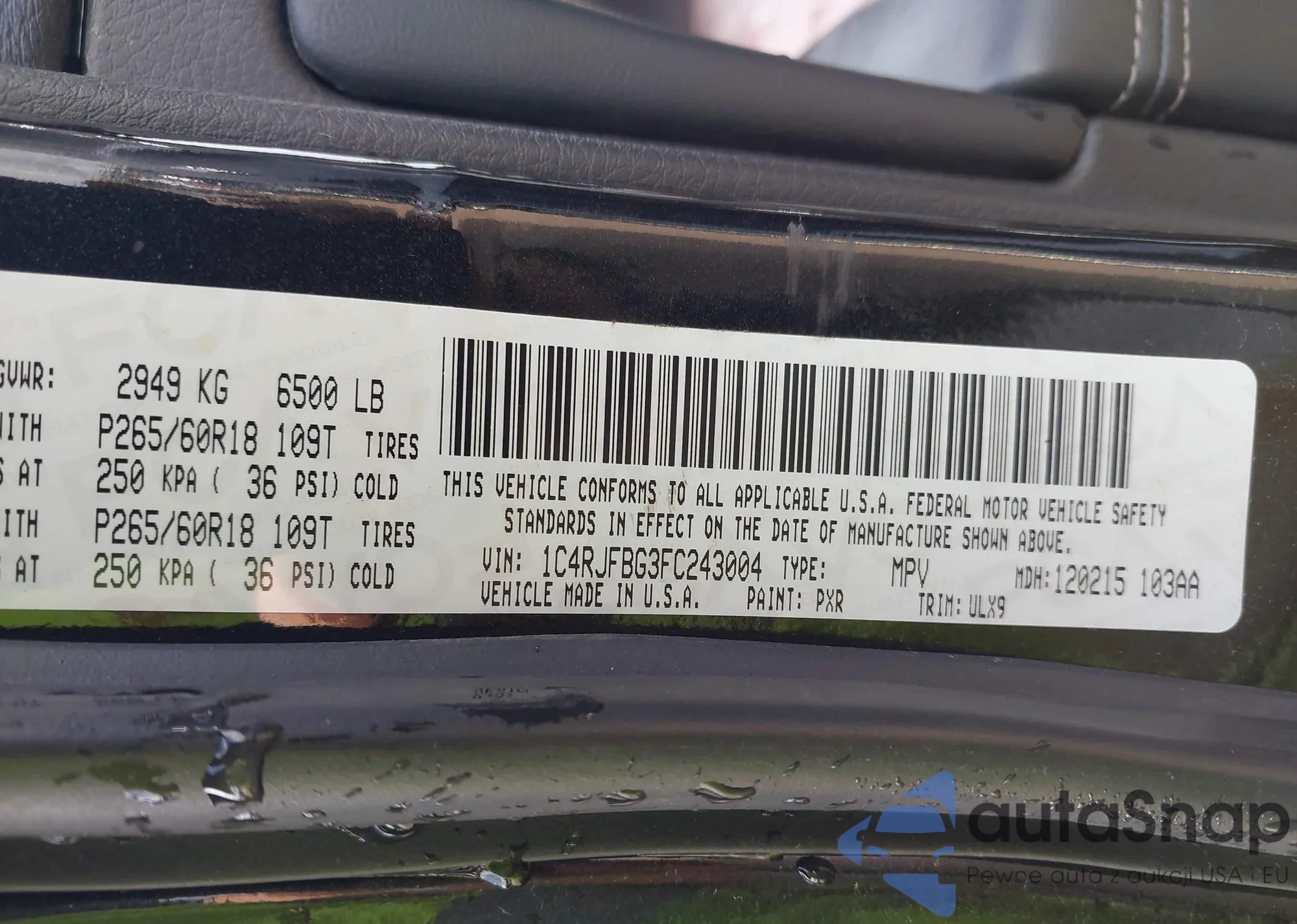 • VIN 1C4RJFBG3FC243004