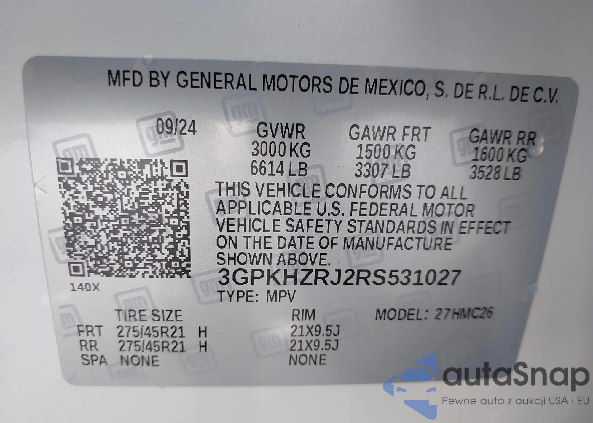 LOT: 42974283 VIN: 3GPKHZRJ2RS531027