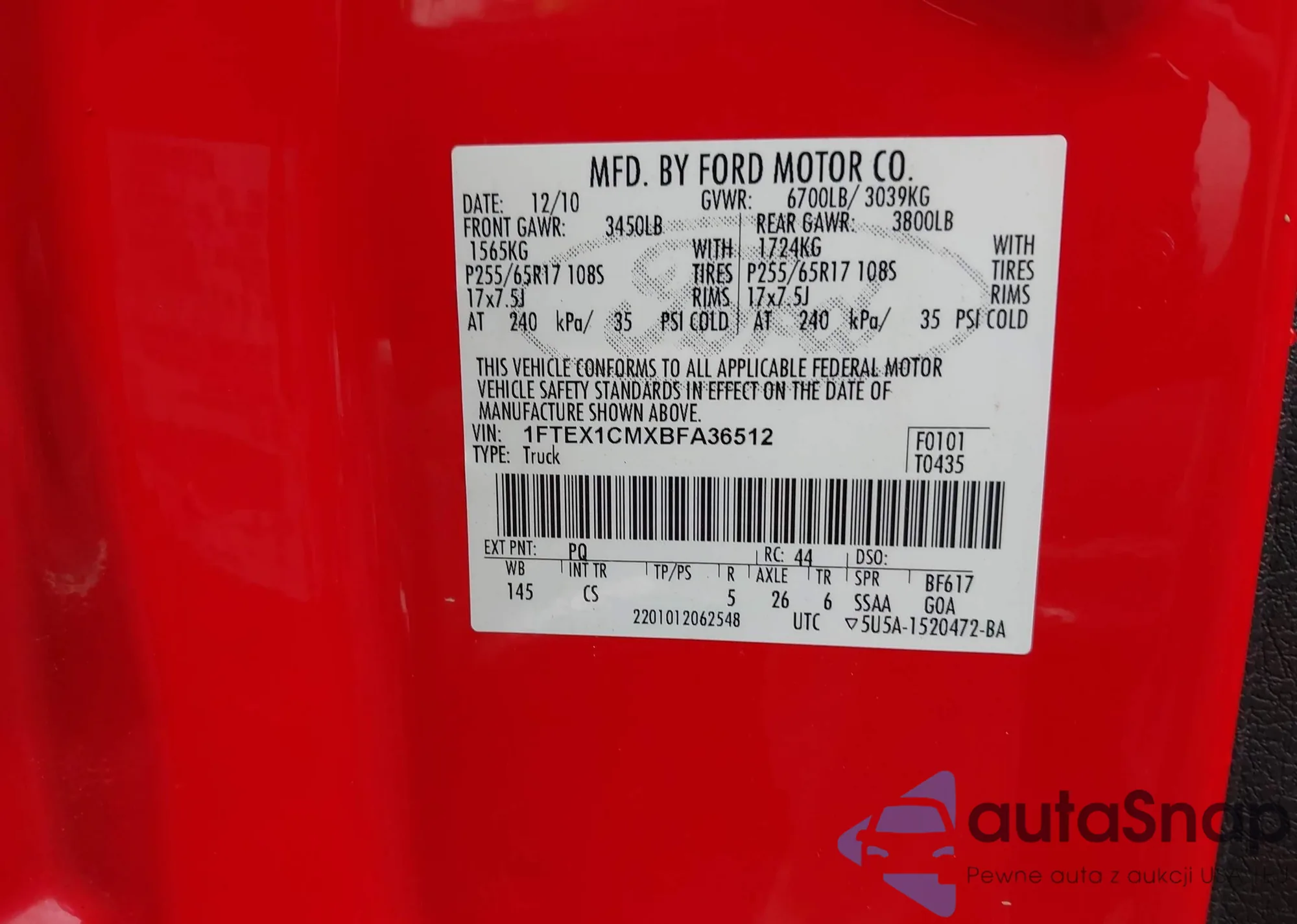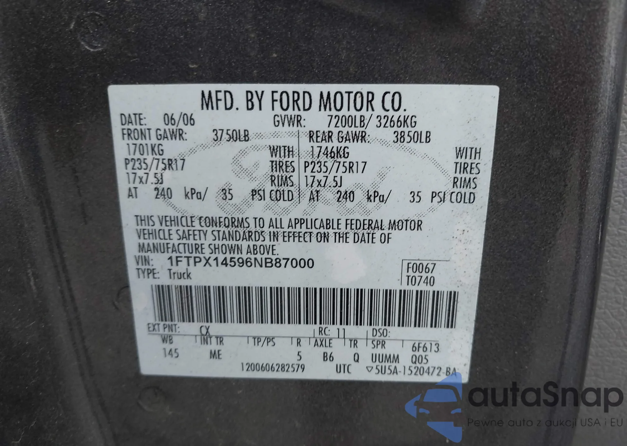 • VIN 1FTPX14596NB87000