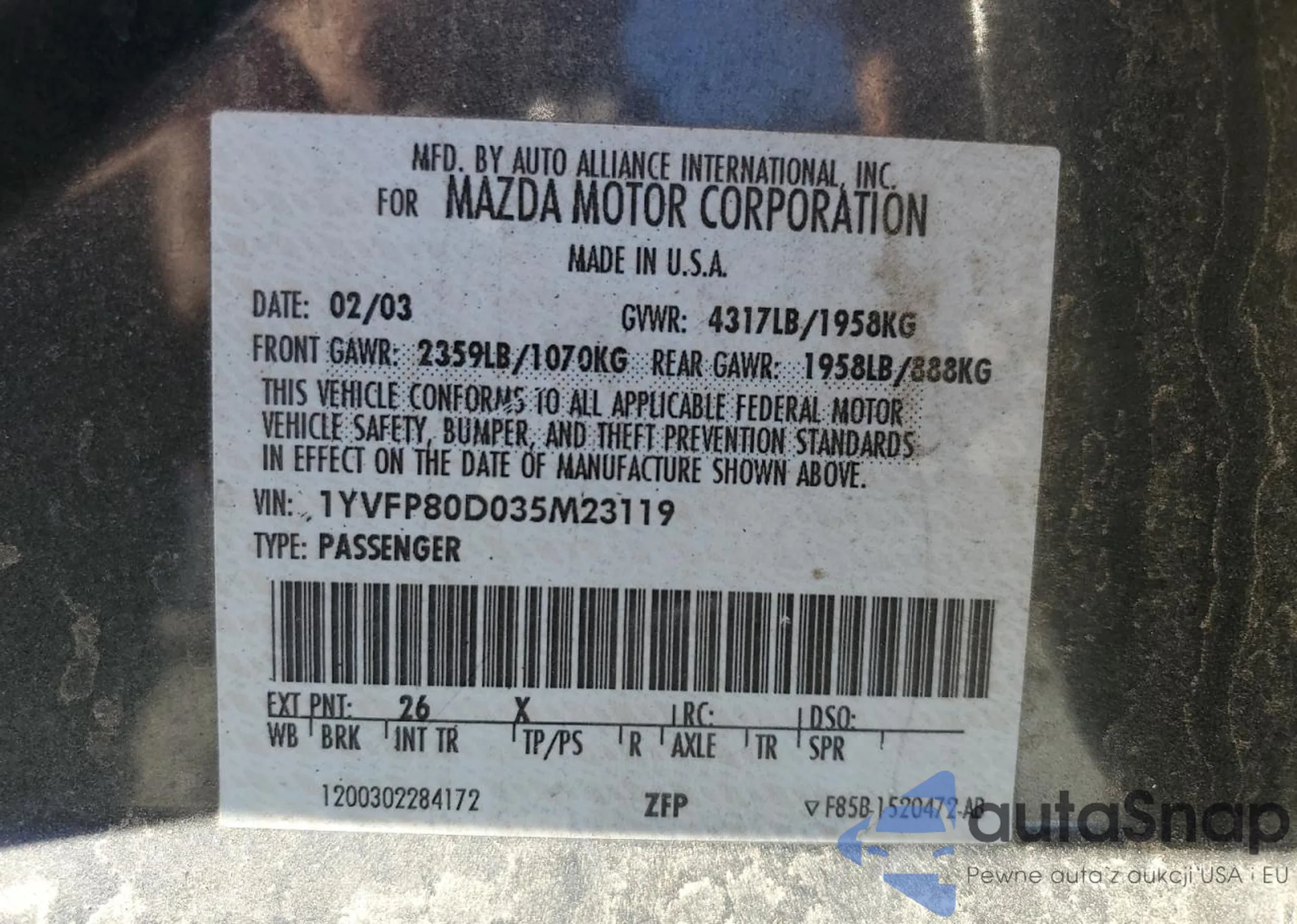 LOT: 66730475 VIN: 1YVFP80D035M23119