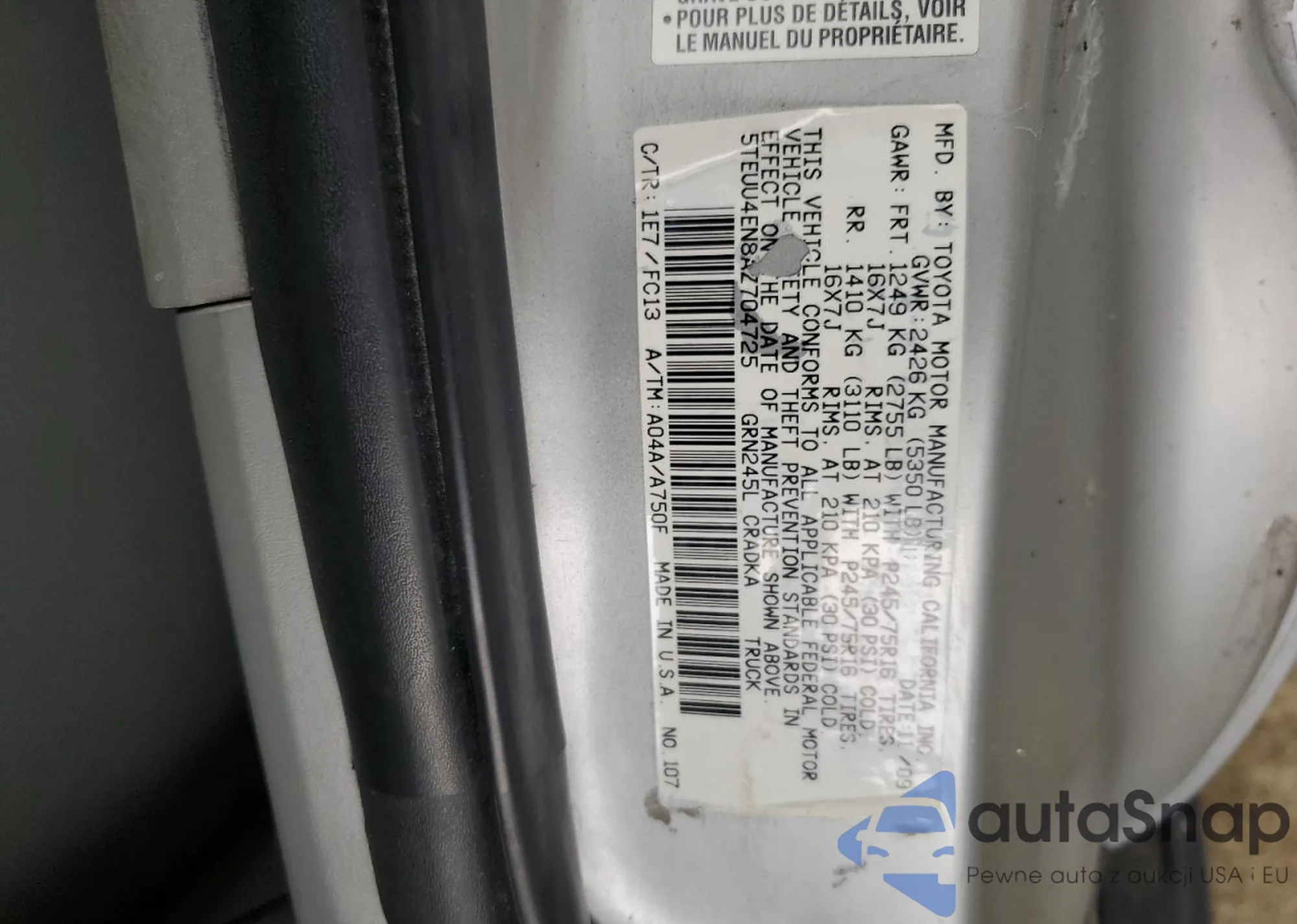 LOT: 80628815 VIN: JTEBU11F270018320