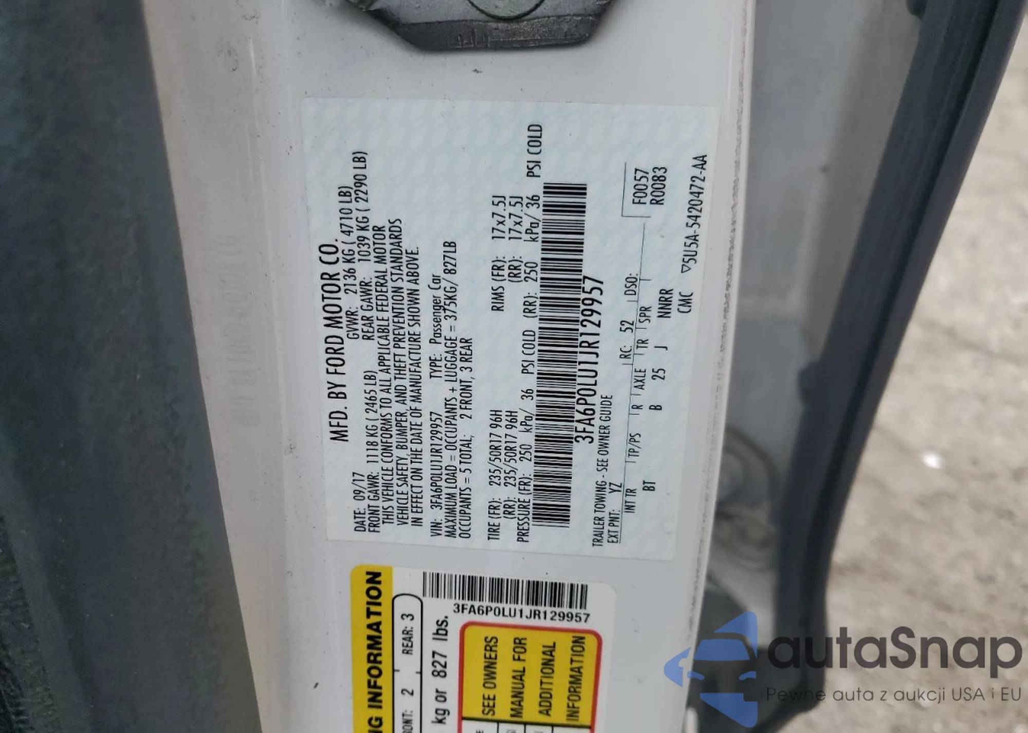 • VIN 3FA6P0LU1JR129957