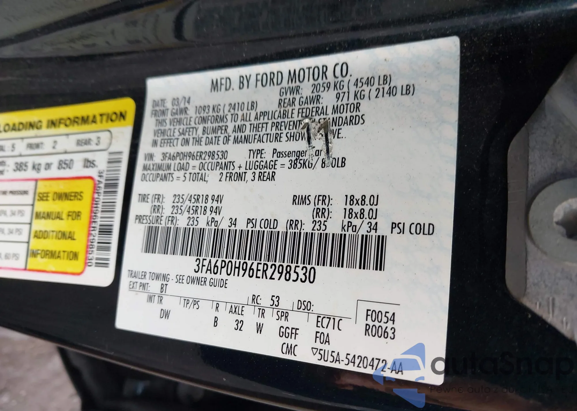 • VIN 3FA6P0H96ER298530