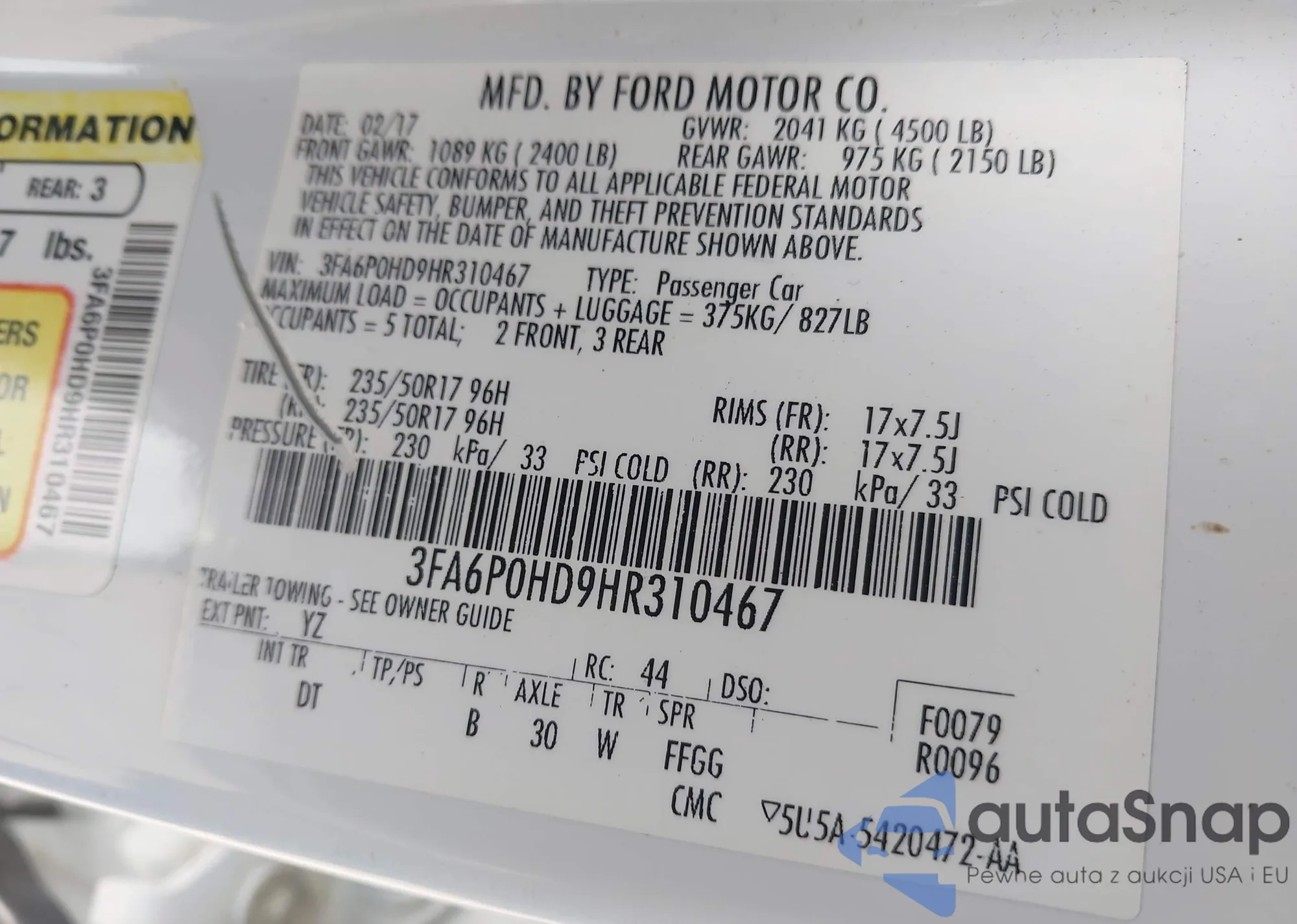 LOT: 42949447 VIN: 3FA6P0T99GR381802