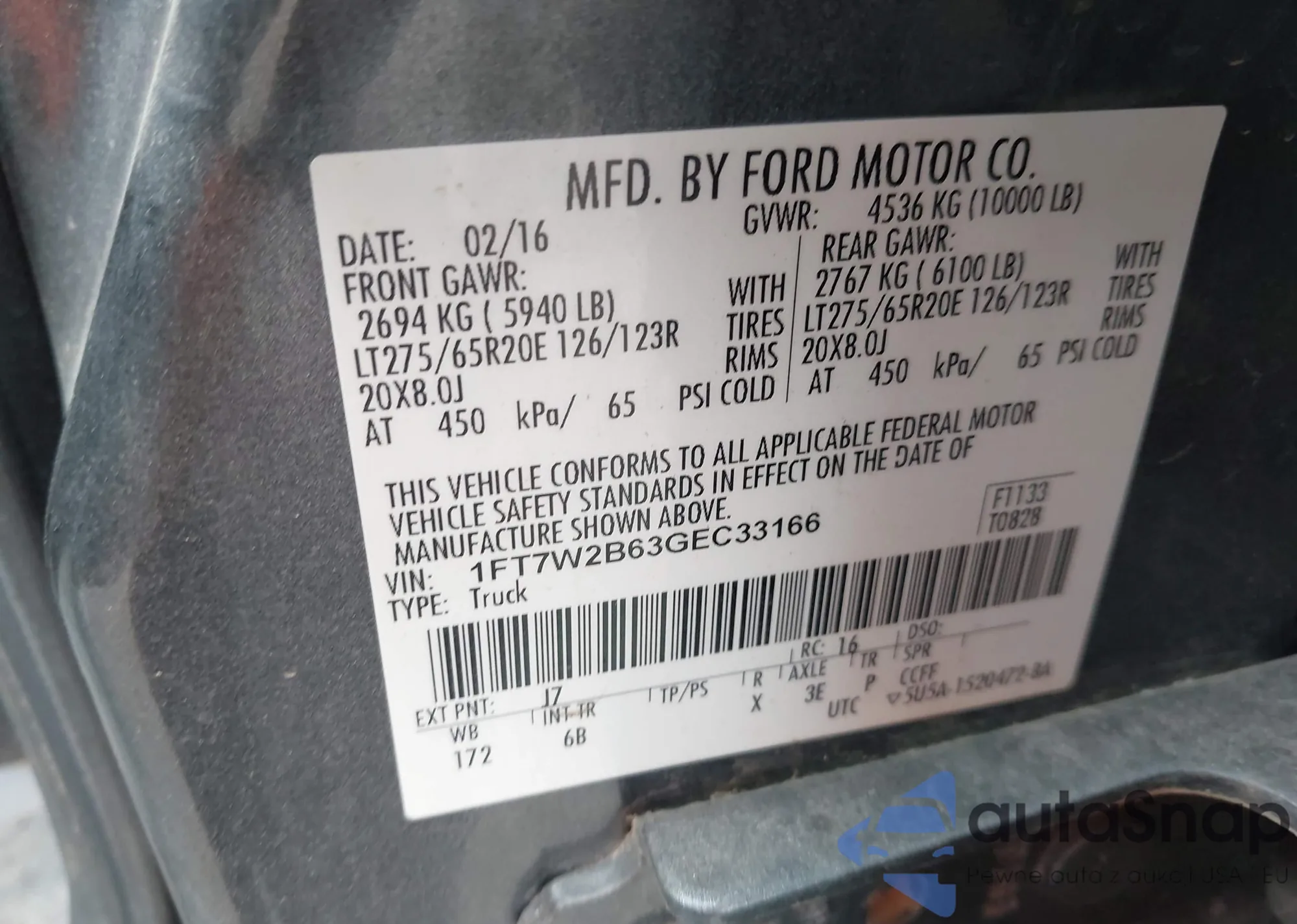 • VIN 1FT7W2B63GEC33166