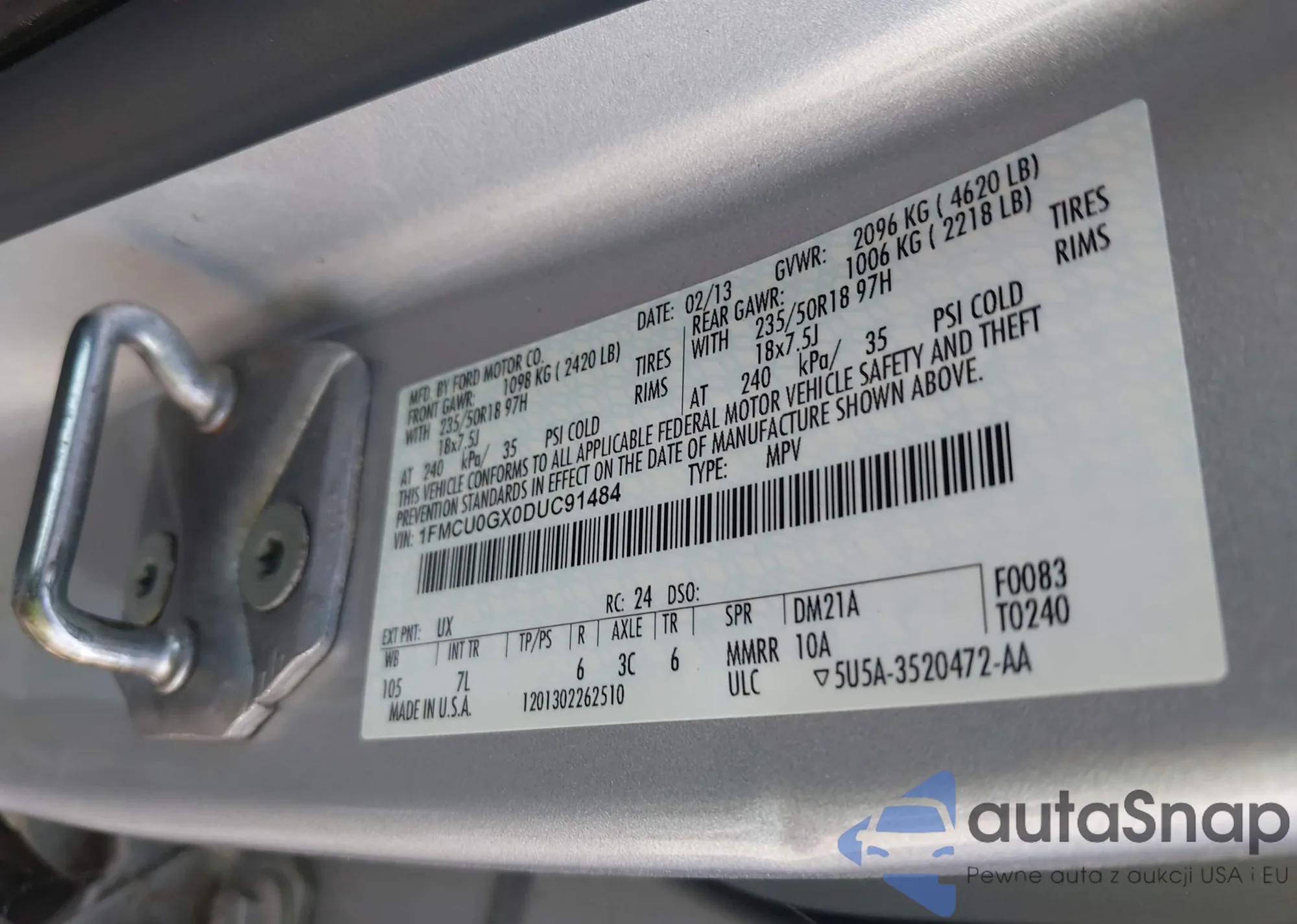 LOT: 43350583 VIN: 1FMCU0GX0DUC91484